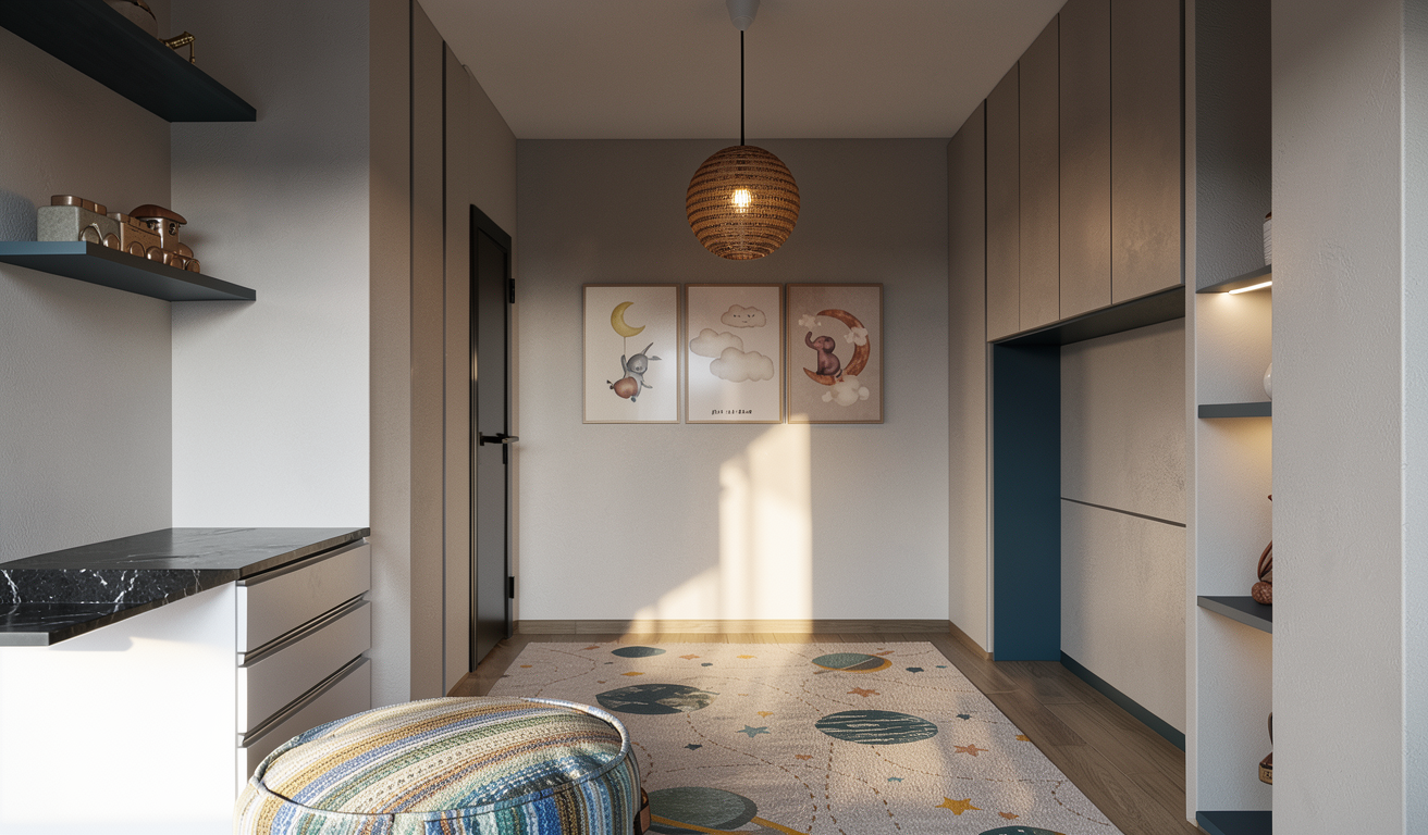 rendere realistic door is white central light it is hay desk blue