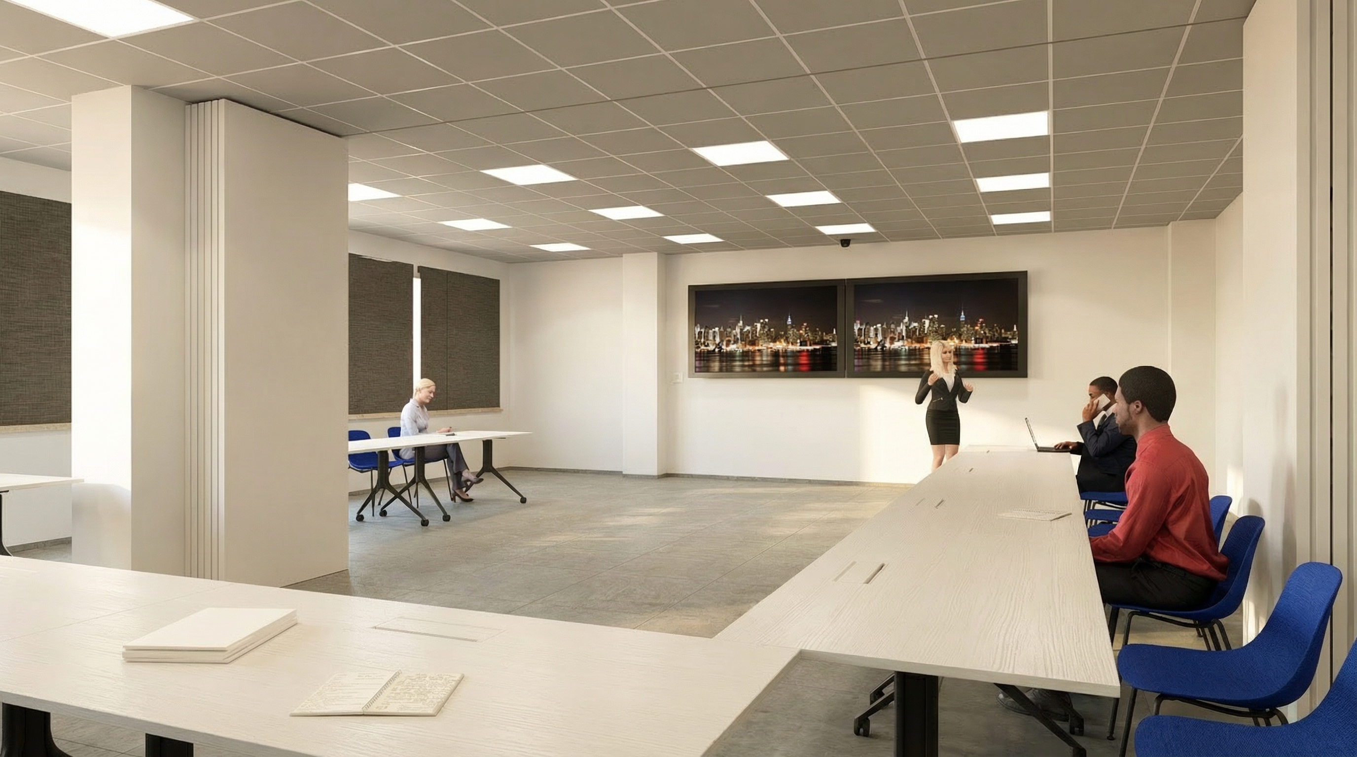 let there be spot lighting on the ceiling let it get sunlight from the window