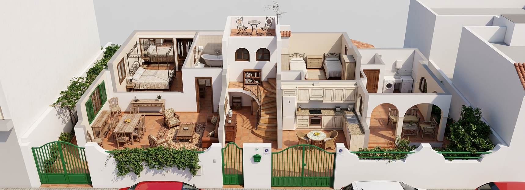 convert this floor plan into a architectural isometric 3d view of a full house show the space from an elevated angle with furniture walls and details visible house is at 11 gap head road in gloucester show a rocky new england landscape show all high end furniture and floor ing to be a mix of polished concrete stone use the same furniture as shows on the plan do not change the orientation of the floorplan