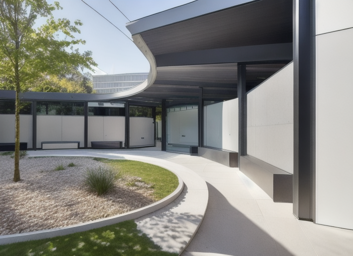 sustainable design night shot please add land scape swiming pool palmtrees cars people architecture
