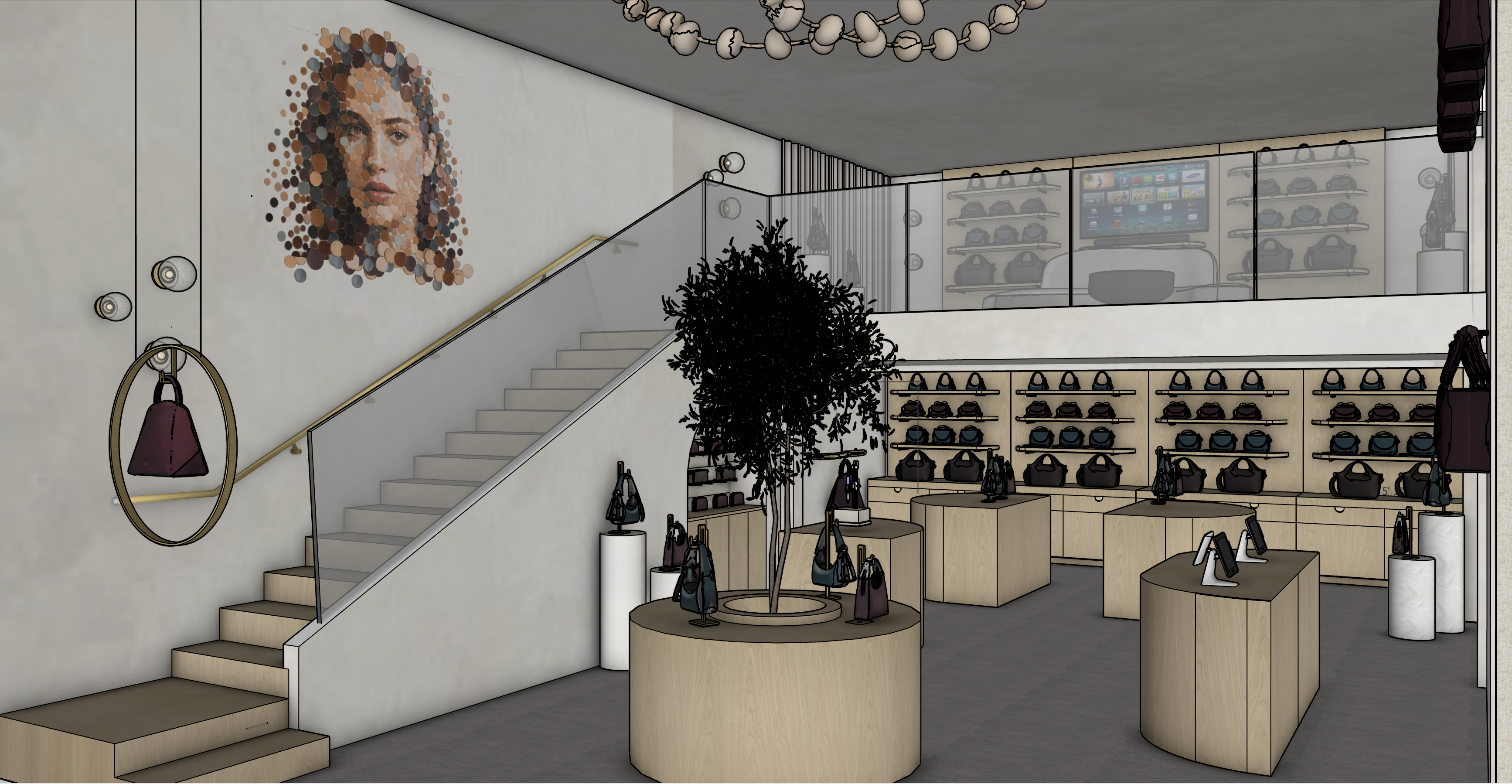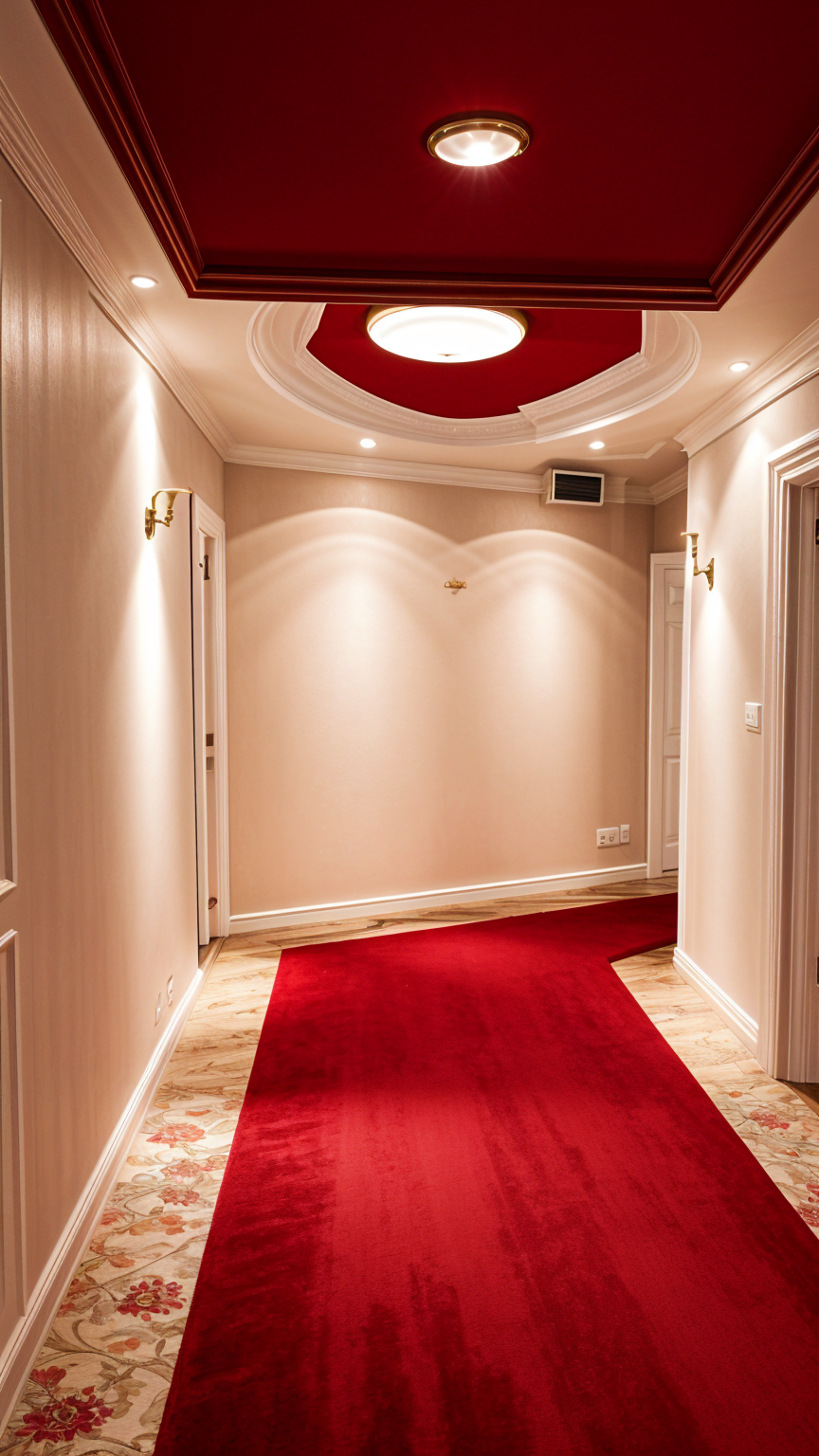 make photorealistic turn on chandelier add recessed lighting to the ceiling and do not change the chandelier dont alter mural light under the mezzanine add recessed lighting turn sconces