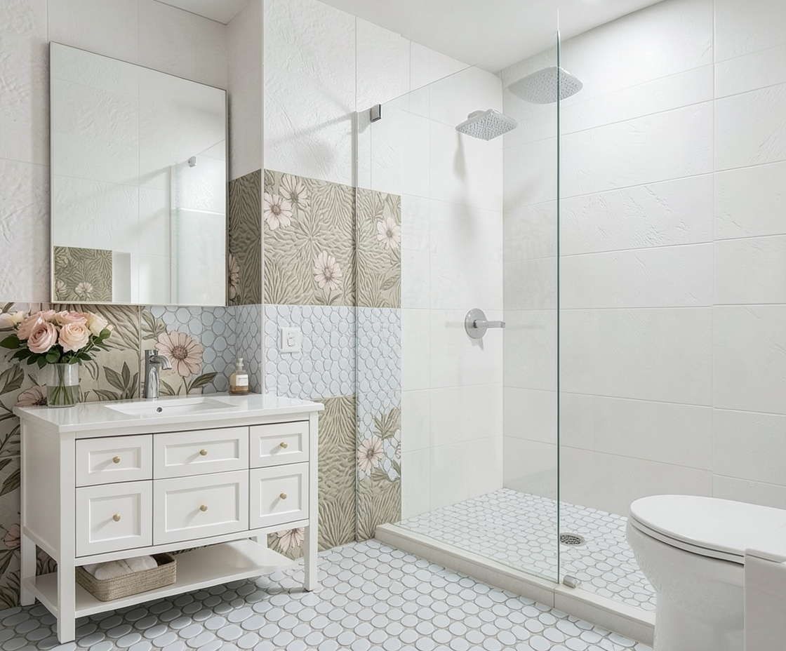 make this bathroom view more realistic enhance materials put ceiling and nice ilumination