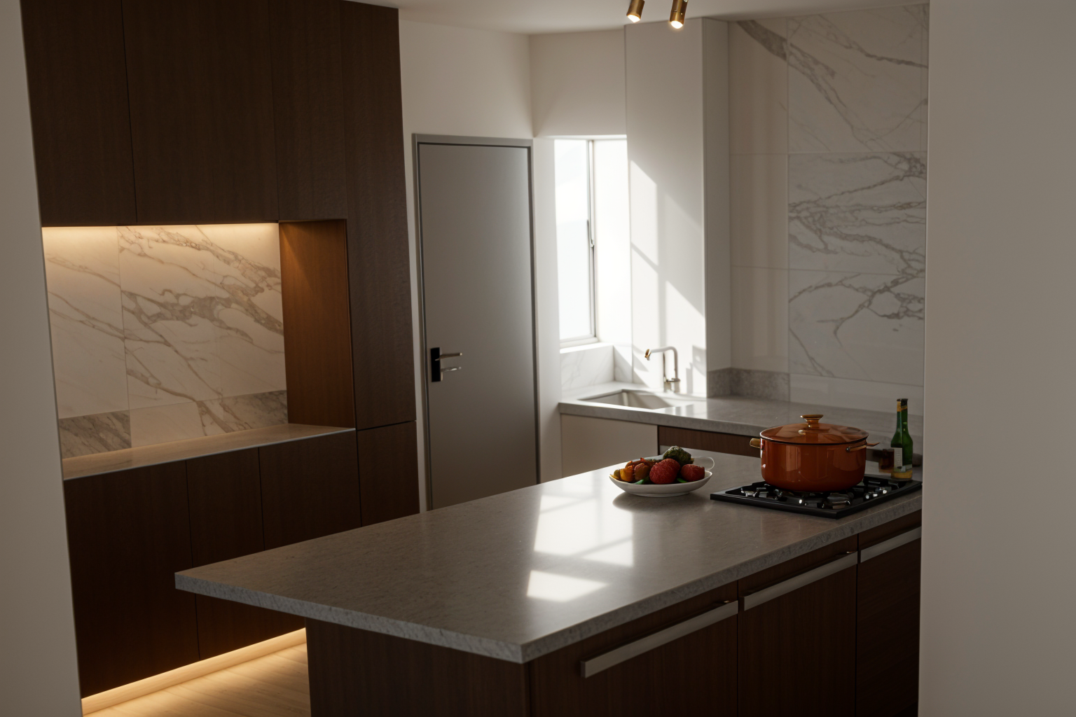 convert this floor plan into a minimalist isometric 3d view of a full house show the space from an elevated angle with furniture walls and details visible make this urban building floor plan into a isometric plan with only simple boxes of grey colour and green trees for the circled area make it only the key area with colours of white green and beige use the same furniture as shows on the plan do not change the orientation of the floorplan