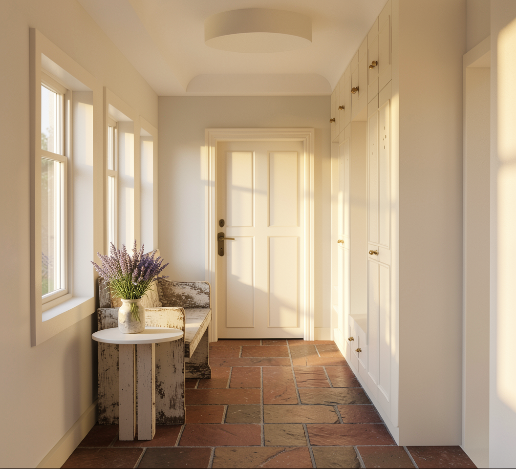 soft glowy lit scene with a modern and sleek design smooth dark grey concrete led panels on the curved walls slightly blurred business woman and man seated at the chairs and computer with glowing yellow headphones