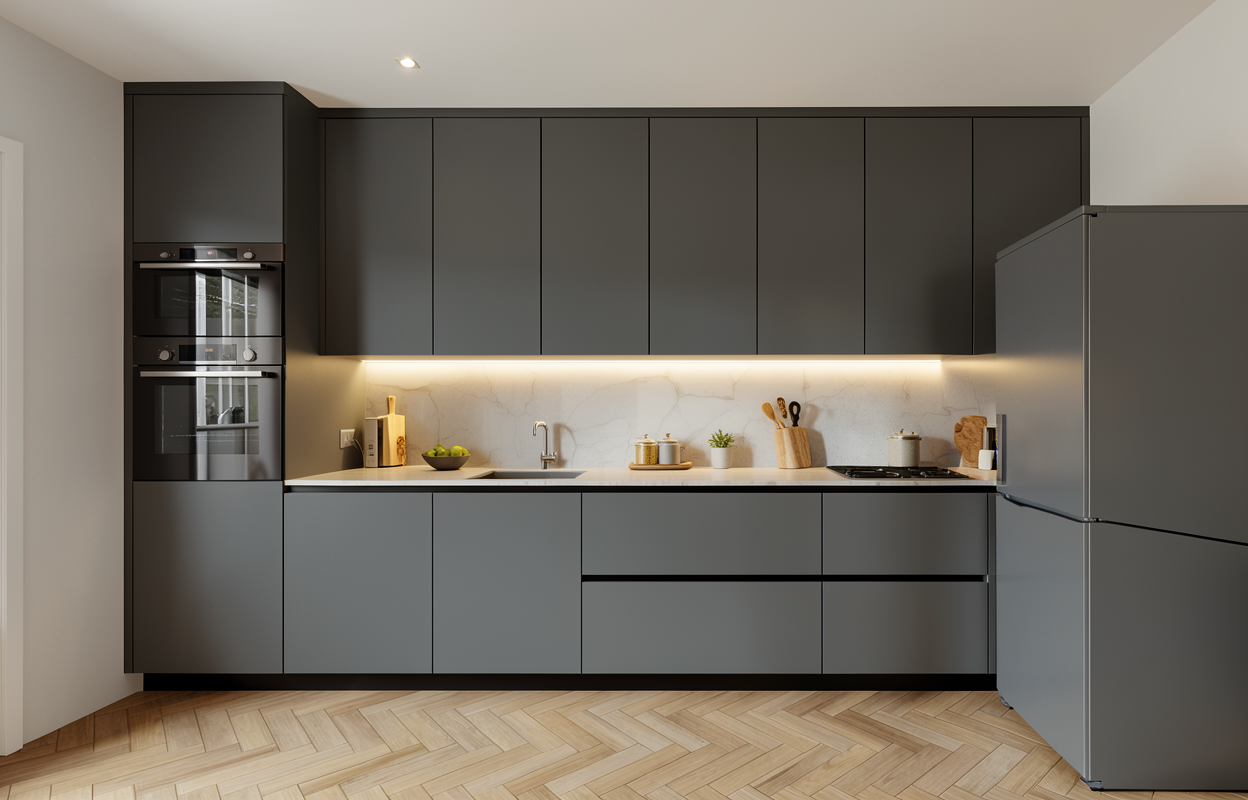 create a photorealistic image of a modern single story house with contemporary minimalist architecture and a flat roof the building has large floor to ceiling windows and partially uses black colored wooden cladding on the facade combined with modern materials like glass and concrete the house includes a slightly elevated central section where narrow low horizontal windows run continuously around the building in front of the house there is a spacious terrace that connects to a well maintained green lawn with flowers and simple landscaping the entrance is fully accessible for wheelchair users with a gently sloped ramp integrated naturally into the design the architectural style should resemble modern yacht club architecture light elegant and coastal add exterior cornices and detailing typical for seaside buildings that provide shade and protection from weather bright natural daylight realistic materials high detail architectural visualization photorealistic rendering add some romantic cnc elements to the house make entranca fancy