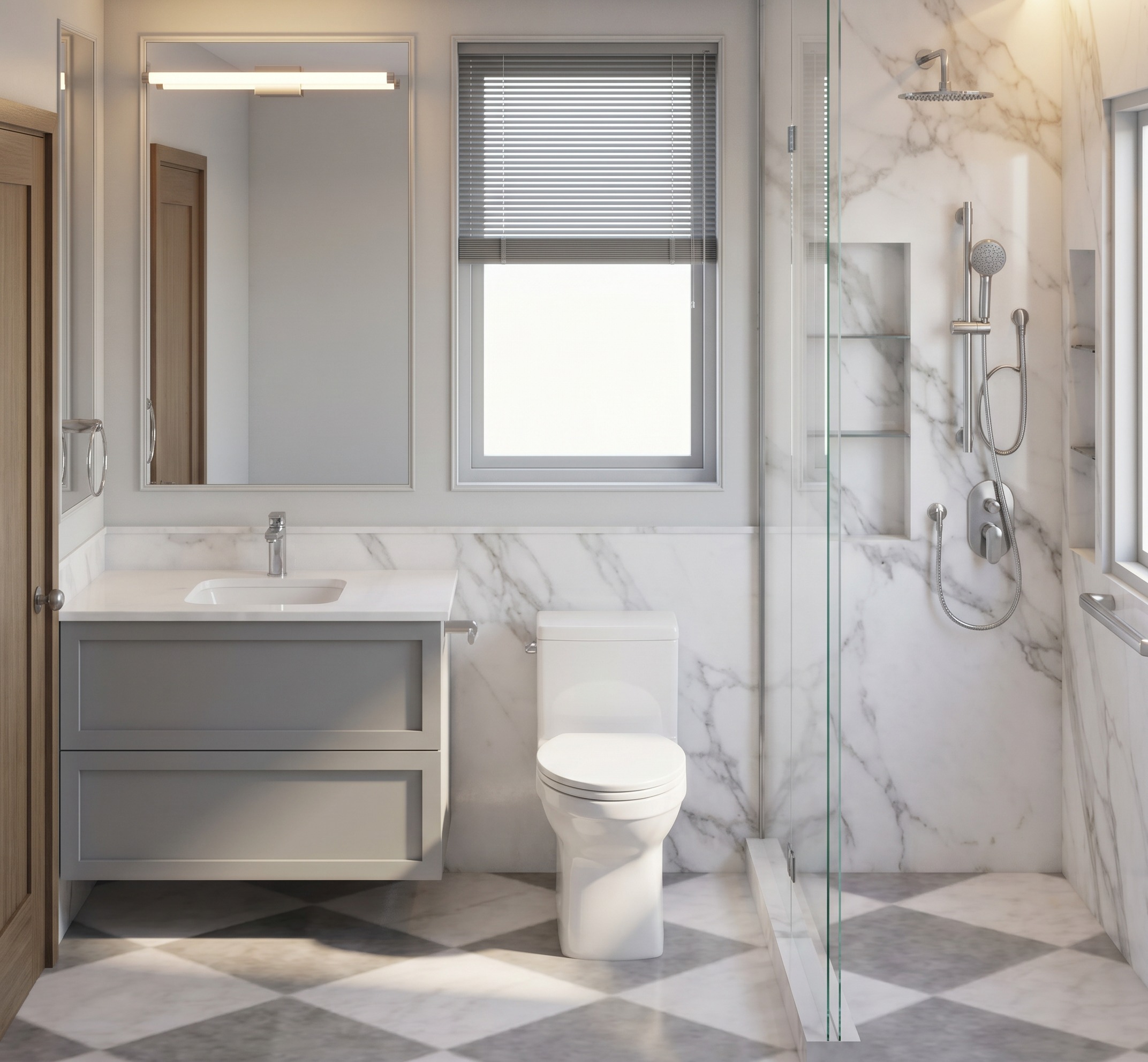 make window above toilet just wall with wainscoting remove natural light and use artificial lighting