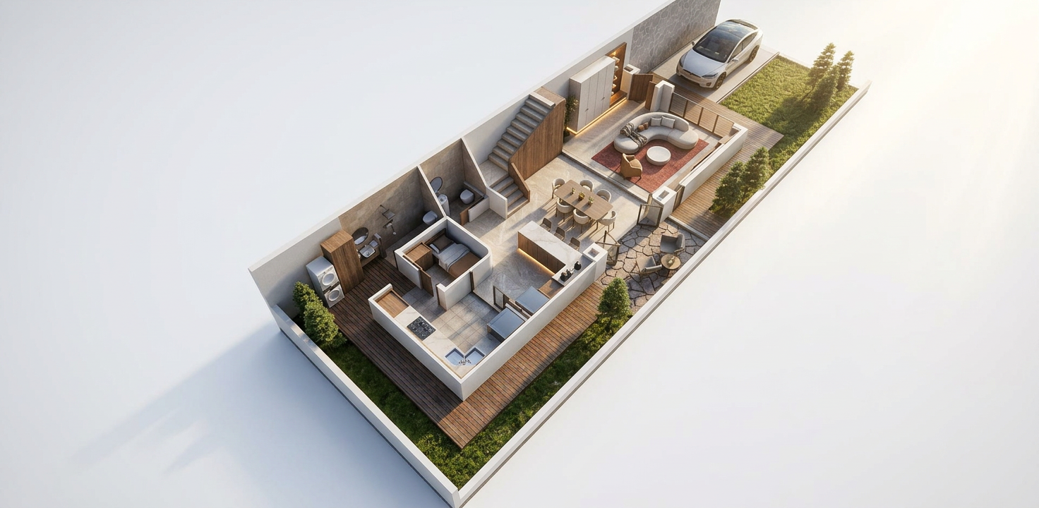 replace vegetation with more realistic landscape and include vegetation behind home make ultra realistic landscaping