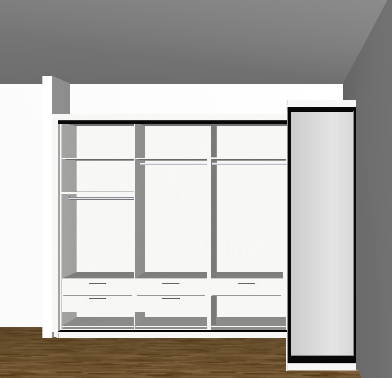 just a 3d render keep colours as it is the side panel will be mirror add closet decoration