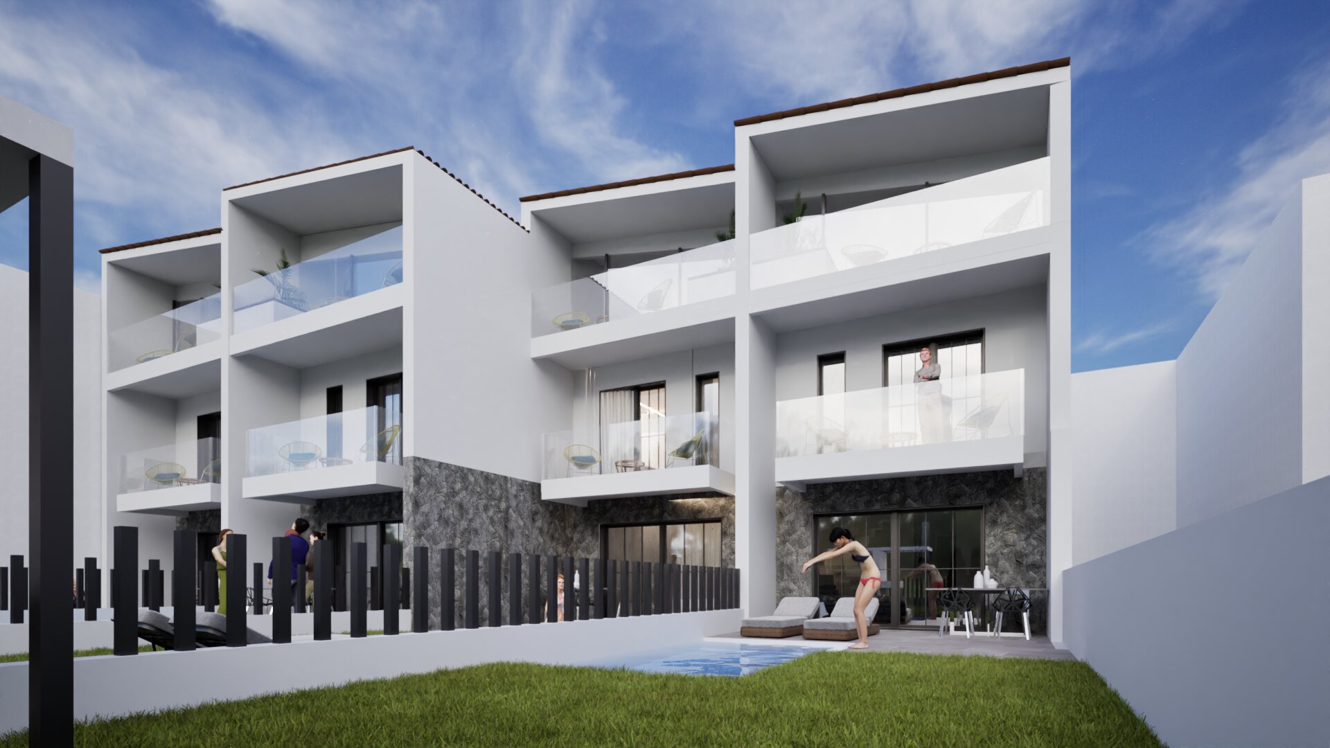make it realistic make the water look like swimming pools add few short mediterranean plants replace the woman at the swiiming pool with another one