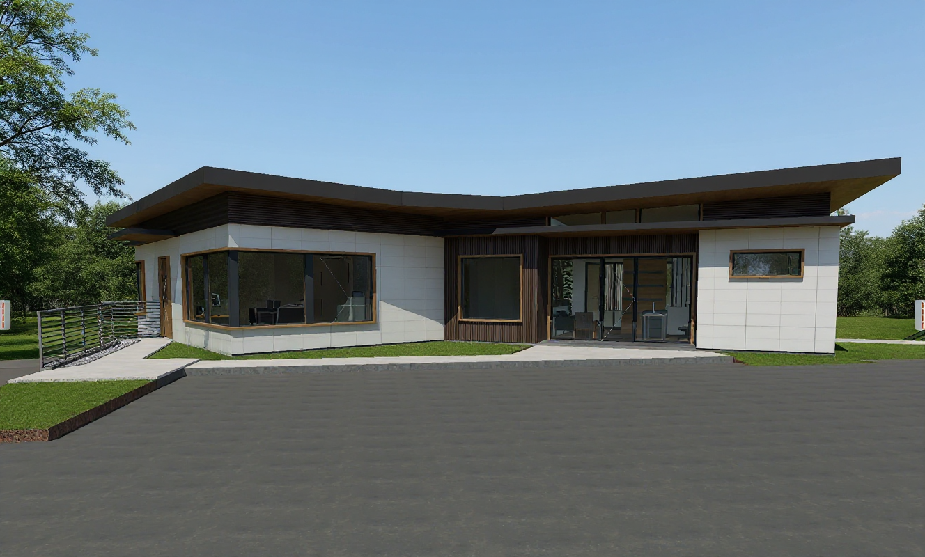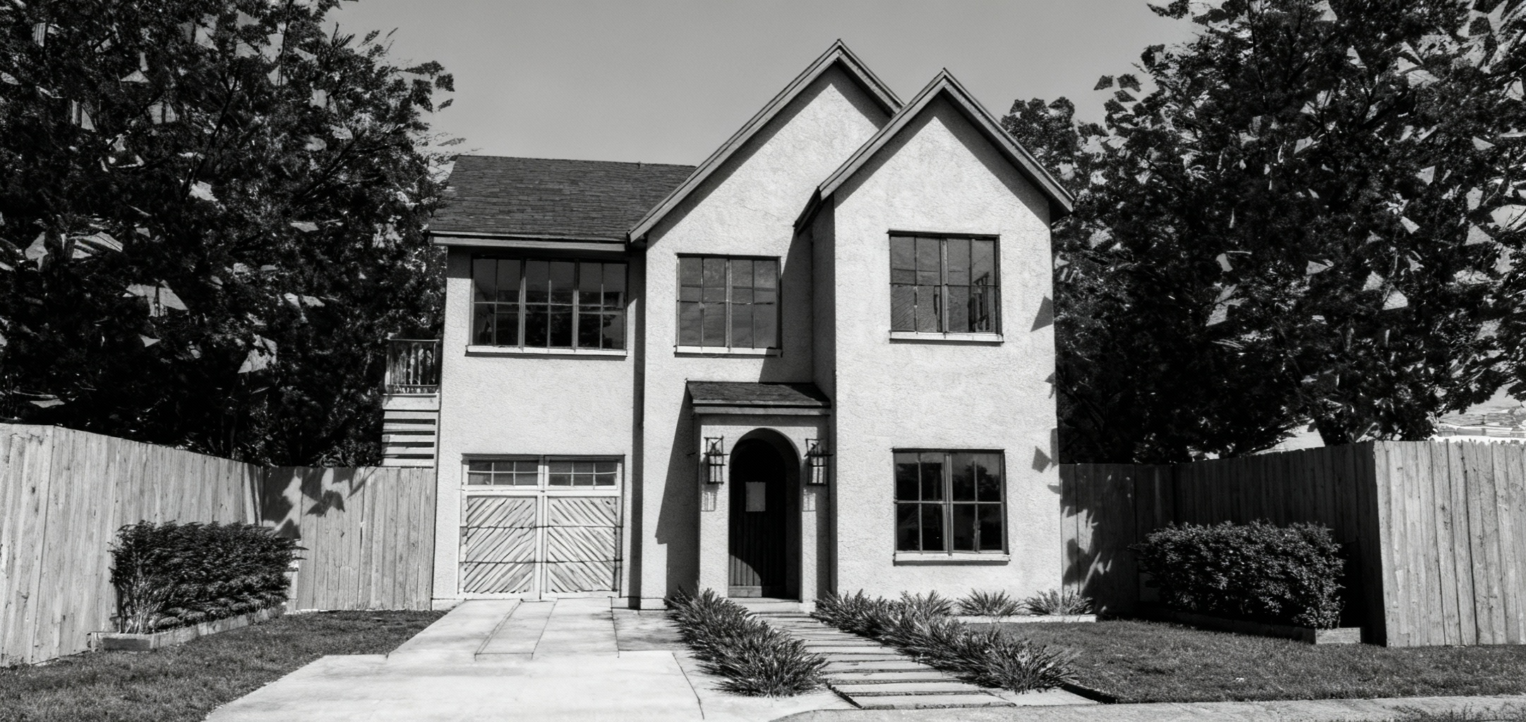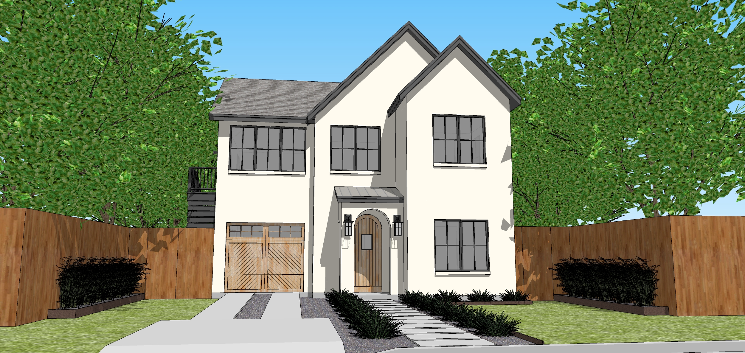 make a more attractive black and white rendering from this image do not change the design features of the house make it architecturally sketchy