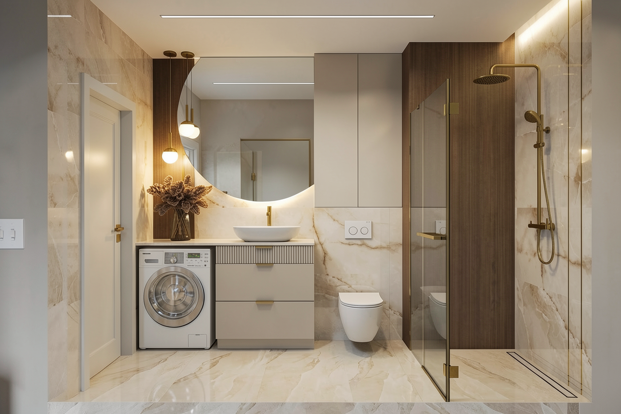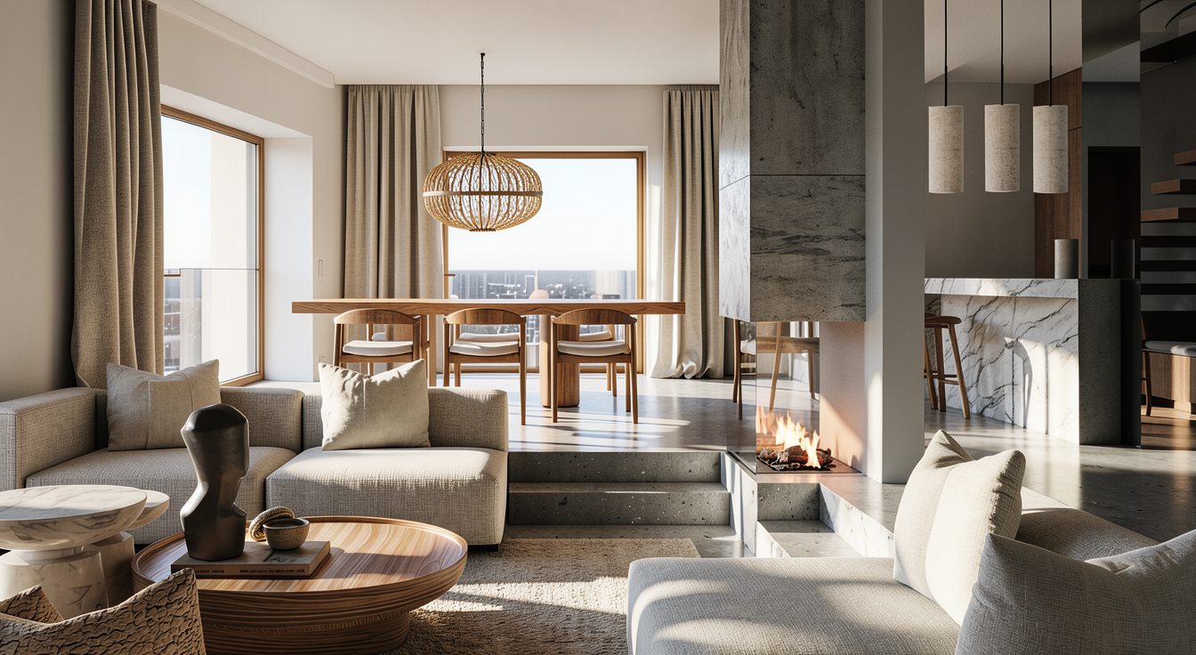 crea una imagen fotorelaista realza texturas e iluminacion el lacado de las puertas es un color azulado quita los tiradores de en medio de las puertas iguala los tonos de azul son un poco grisaceos vuelve a poner los tiradores a ade un jardin de campo en el exterior de la ventana