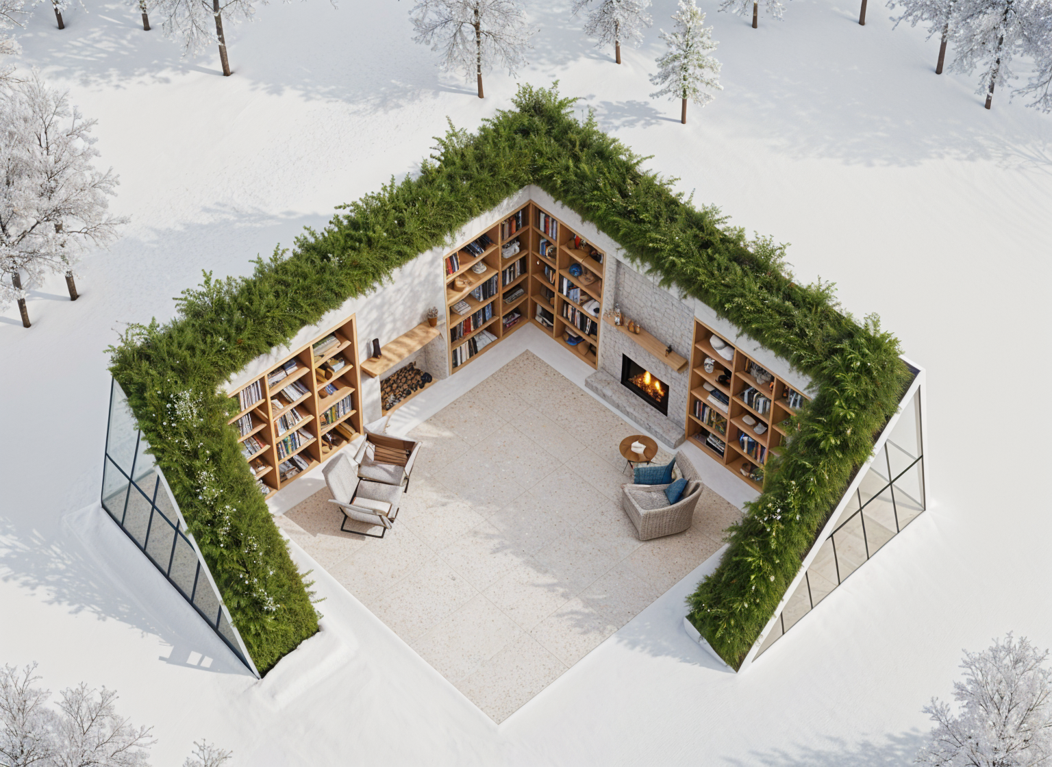 1 keep colours 2 place a frontal generic building facade in the background and close to the windows 3 add light in the suspended lamp like the flos ic lamp 4 lighting morning natural light