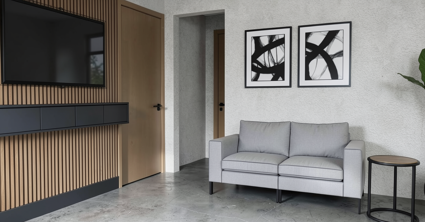 make concrete flooring slightly darker and matte