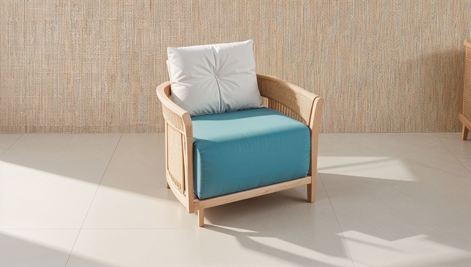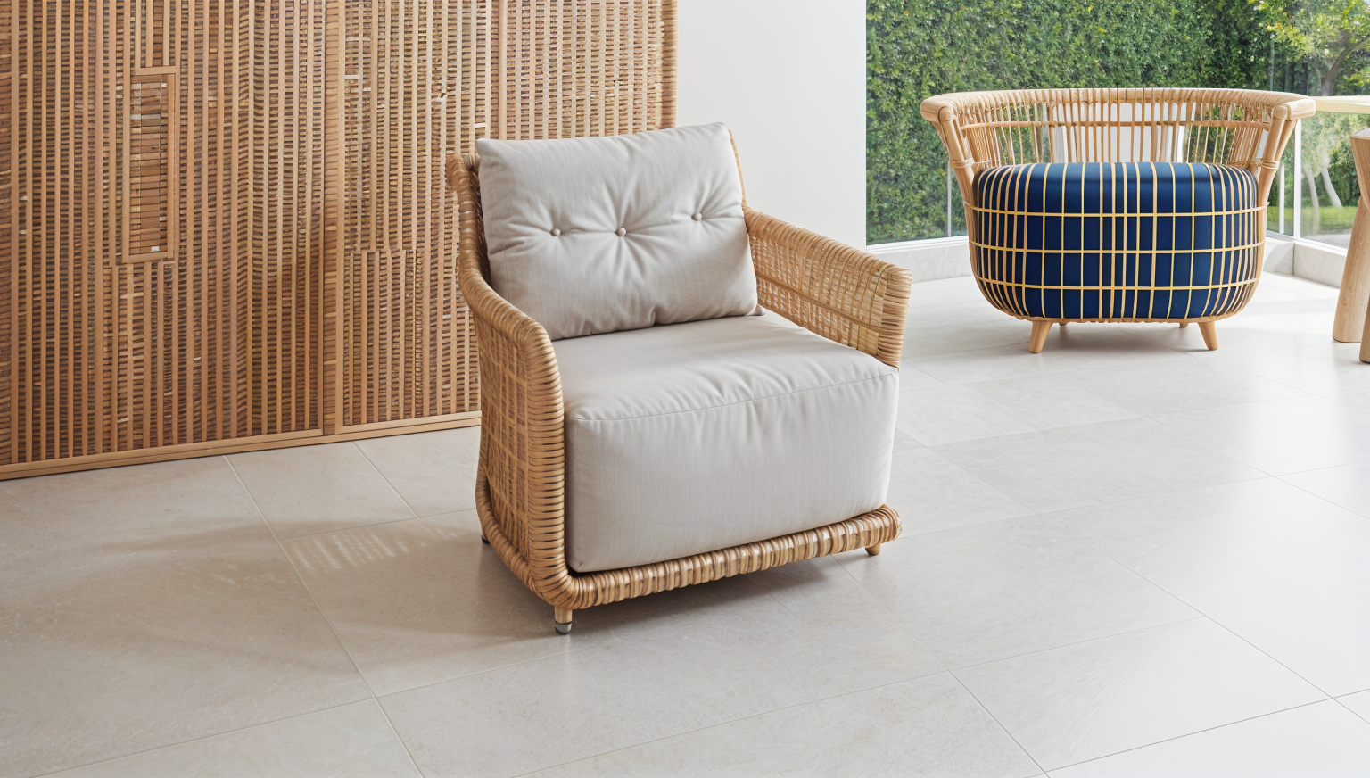 modernist exterior shot weaving pattern inspired chair with wooden legs design upholstered seat architecture