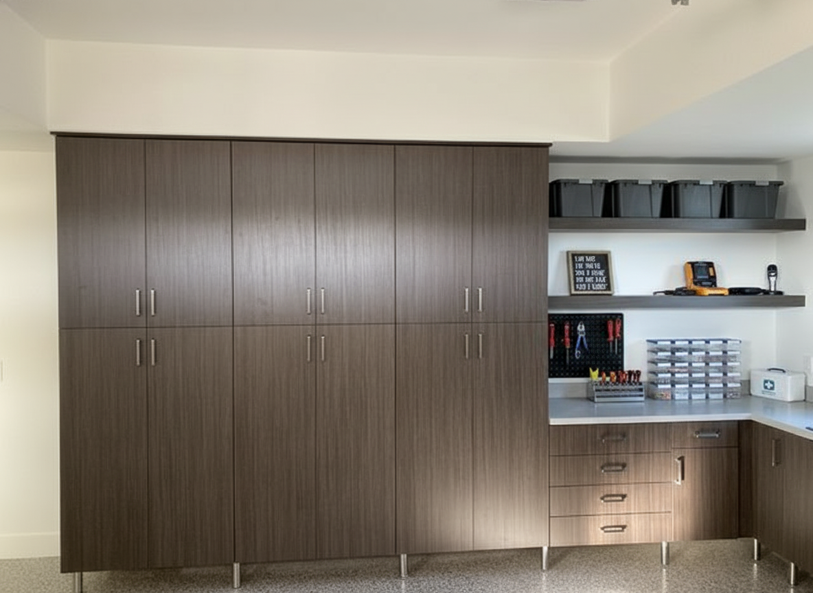 clean debris off shelf remove sticker from window remove wire handing remove roll of kraft paper style shelves in garage