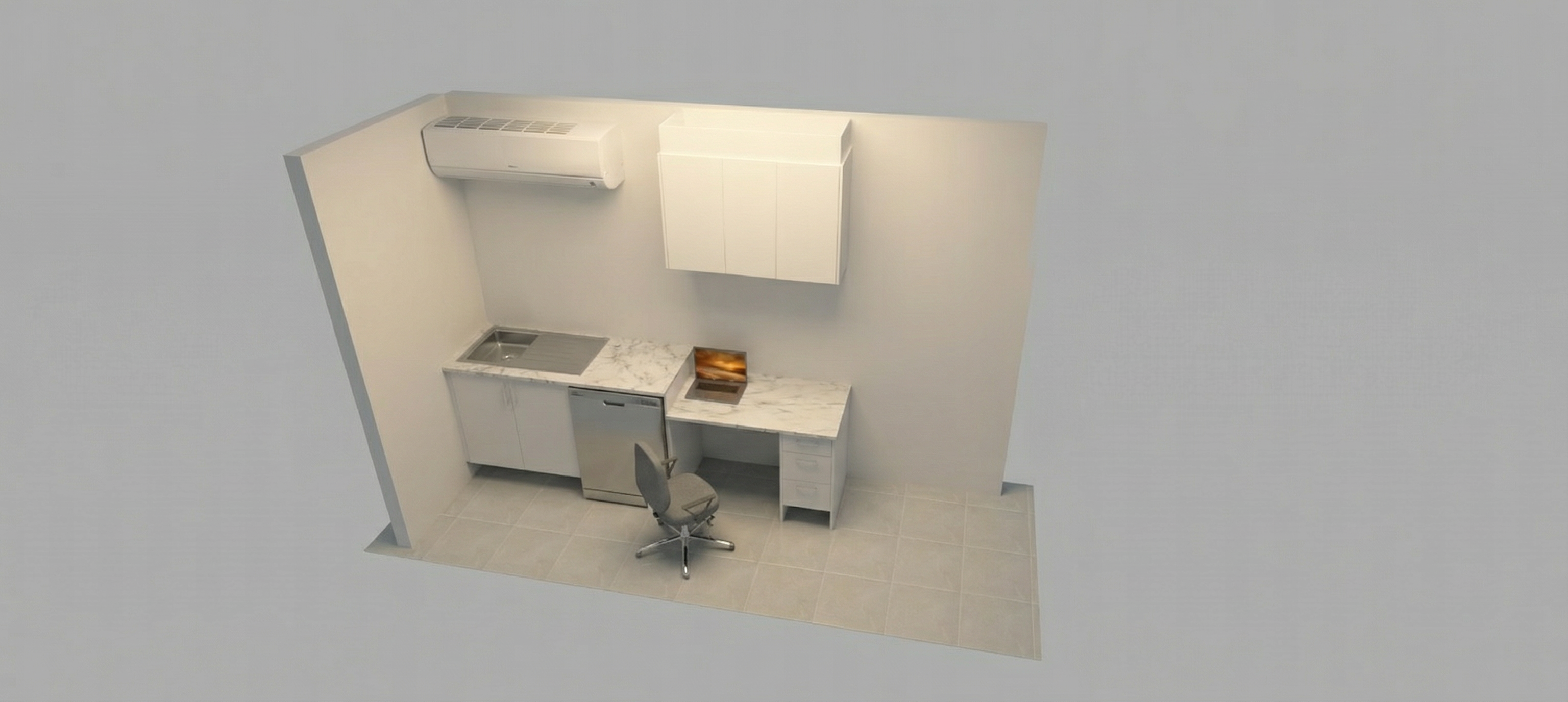 put a grey closed cabinet on the right side of the picture to cover the right window