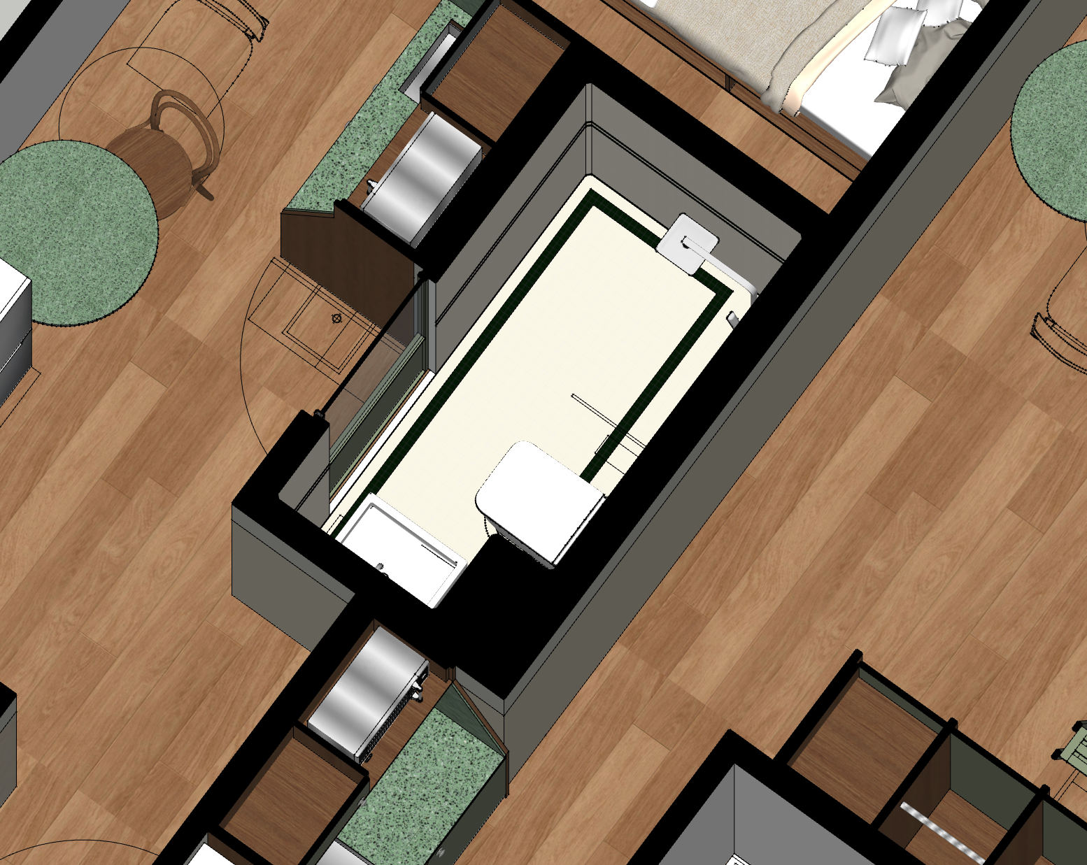 can you use this image photo realistic the floor and wall tiles are green and white