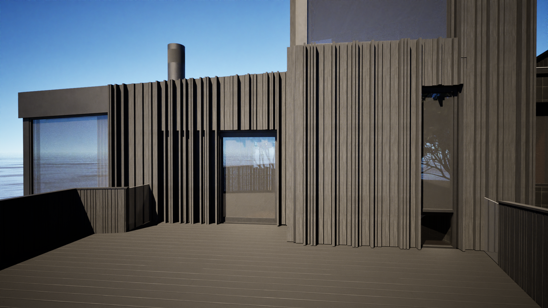 make slightly more realistic dont change lighting no hallucination grey timber cladding