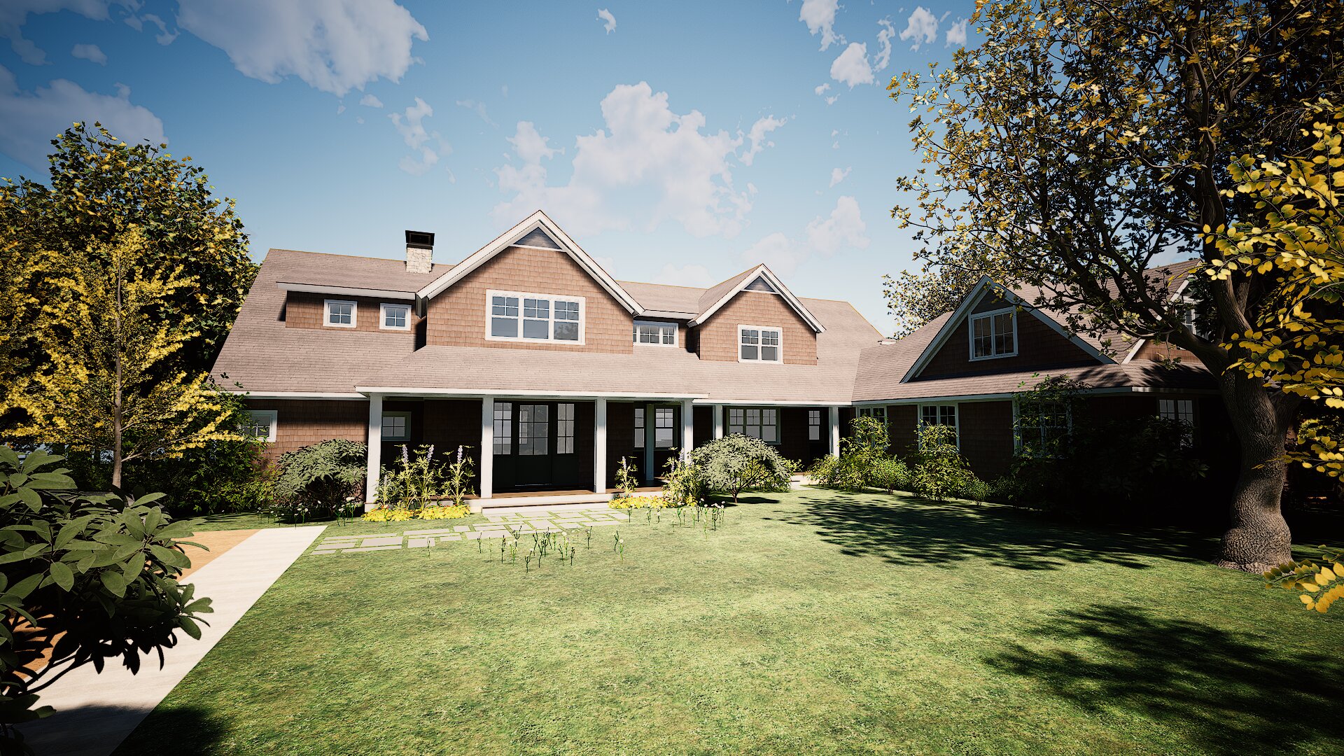 warm mid day lighting cinematic shot puffy clouds lush plantings crape myrtle