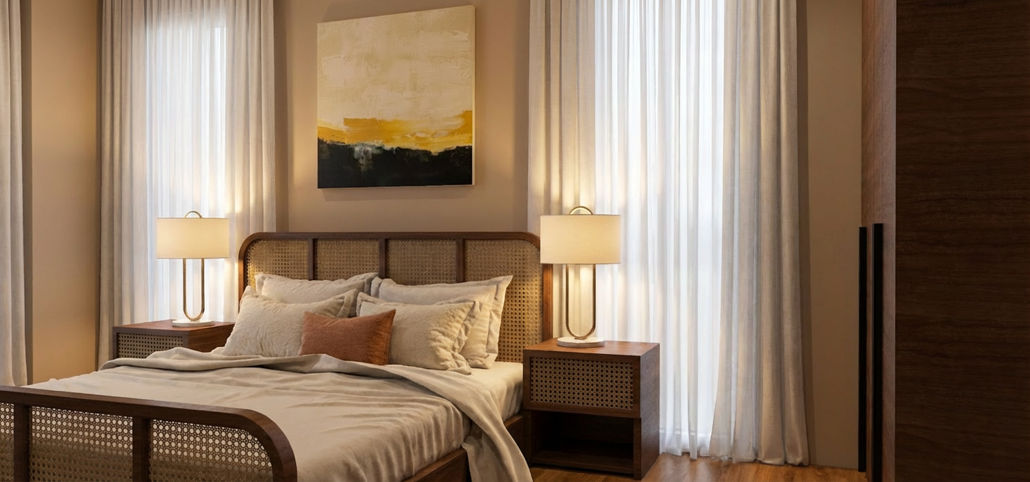 create a highly realistic render of a minimal cabinets with light tone oak wood calm and serene atmosphere the space feels soft earthy and harmonious with a refined and natural aesthetic the knobs of the cabinets are elegant and from marble travertino beige tone the lighting is fully artificial coming from integrated architectural light with a soft illumination throughout the space elegant knobs from travertino marble