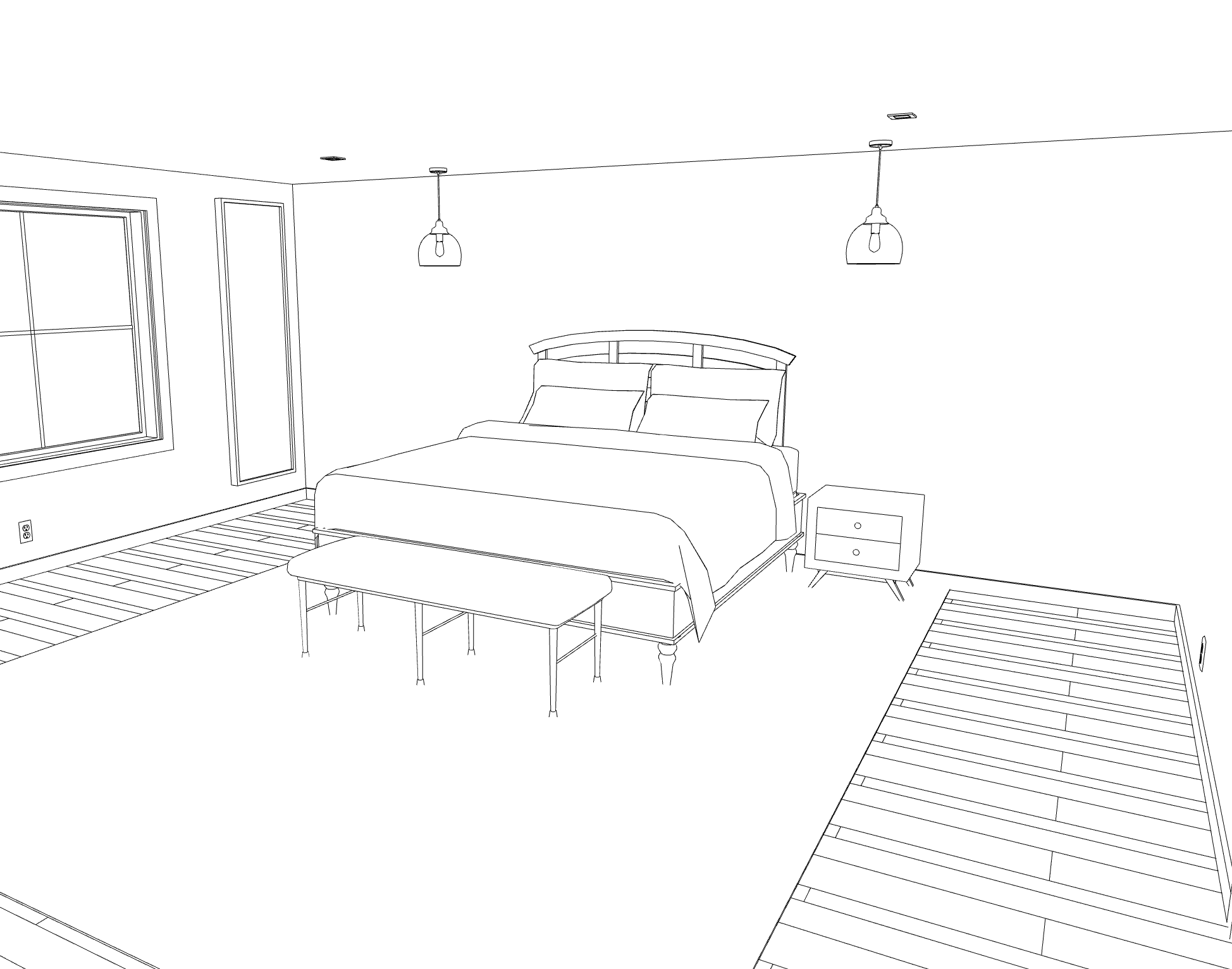 flooring will be avalon wood flooring in vogue 9 1 4 hickory red oak hardwood area rug will be divya in chrome and color will be farm wall behind the bed will be maya roman off wallpaper meditations in vanilla pendants on either side of the bed will be visual comfort bronte large hanging shade in brass the windows will be black and casing will be white curtains will be unique fabric in the pattern pinpoint and color blush the curtains will have trim on them which will be houles in the pattern victoria and the color will be number 9400 keep everything as is