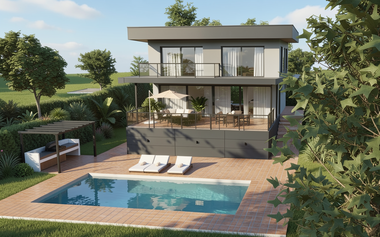 transform the existing staircase into a continuous mediterranean sculpted plaster volume preserve the overall stair location proportions and room layout but completely rework the stair guard and ceiling geometry into one unified carved gesture design direction replace the existing curved guard and angular ceiling plane with a continuous flowing plaster sweep eliminate the sharp triangular ceiling apex extend the curve upward so the guard transitions seamlessly into the ceiling the form should read as carved from a single mass no hard corners or visible framing logic smooth elliptical curvature soft transitions material warm mineral lime plaster finish soft off white with subtle tonal variation matte texture with gentle light movement no glossy paint lighting concealed linear led integrated at the top of the curve soft downward grazing light to emphasize sculptural depth warm 2700k tone details remove bulky base elements at stair bottom simplify edges and eliminate visual breaks maintain minimal restrained mediterranean character calm architectural monolithic atmosphere ibiza contemporary villa sculptural quiet luxury hand formed plaster volume natural light interacting with curvature keep the rest of the interior intact and refined