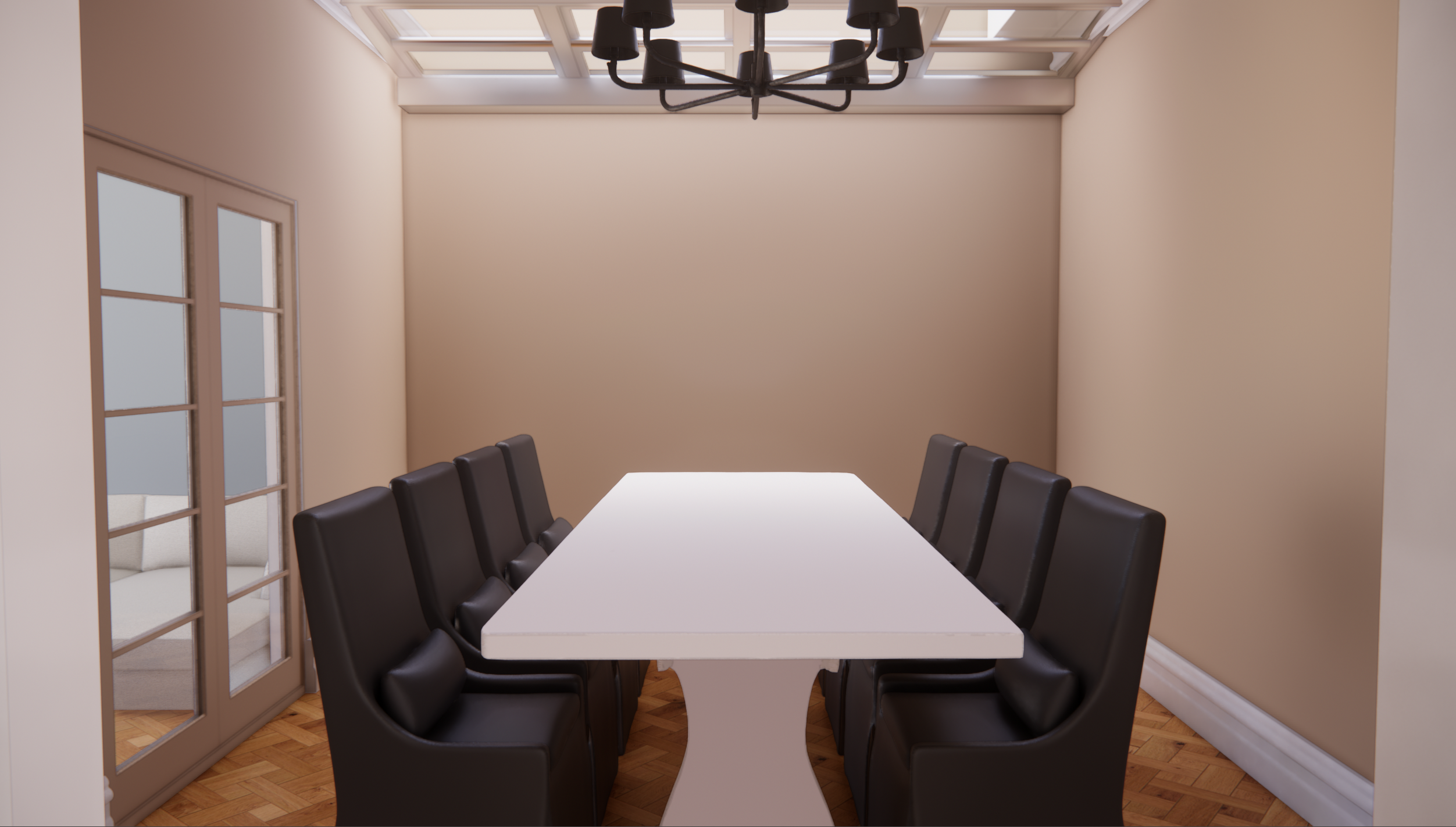 make chairs light beigh fabric make table simple aged timber turn lights on