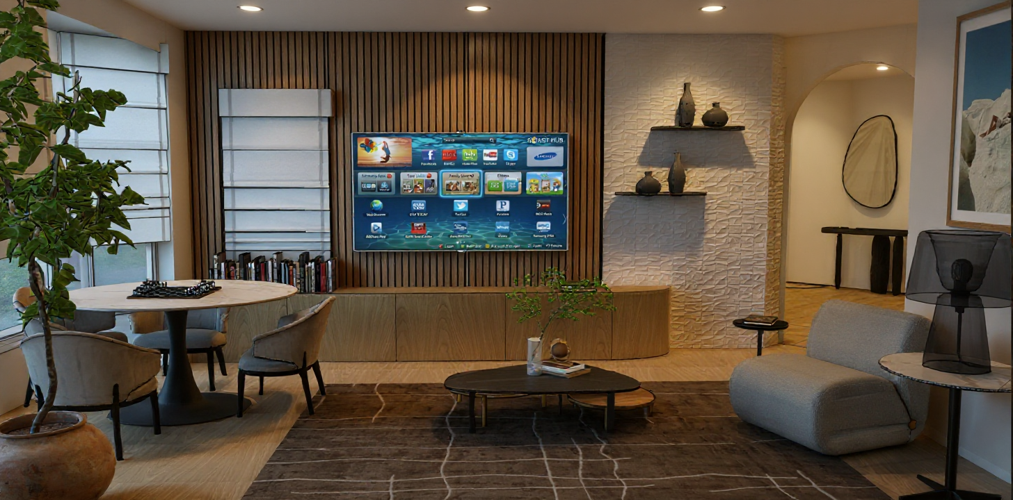keep colors the same just add led strip of lighting between the wood wall paneling behind the tv and the tile
