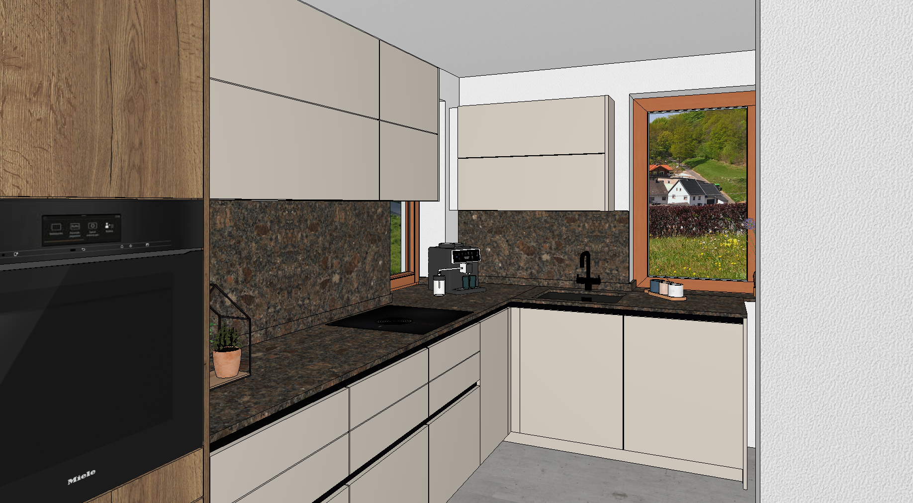 add lightening under the wall cabinets and on the ceiling the room should be bright