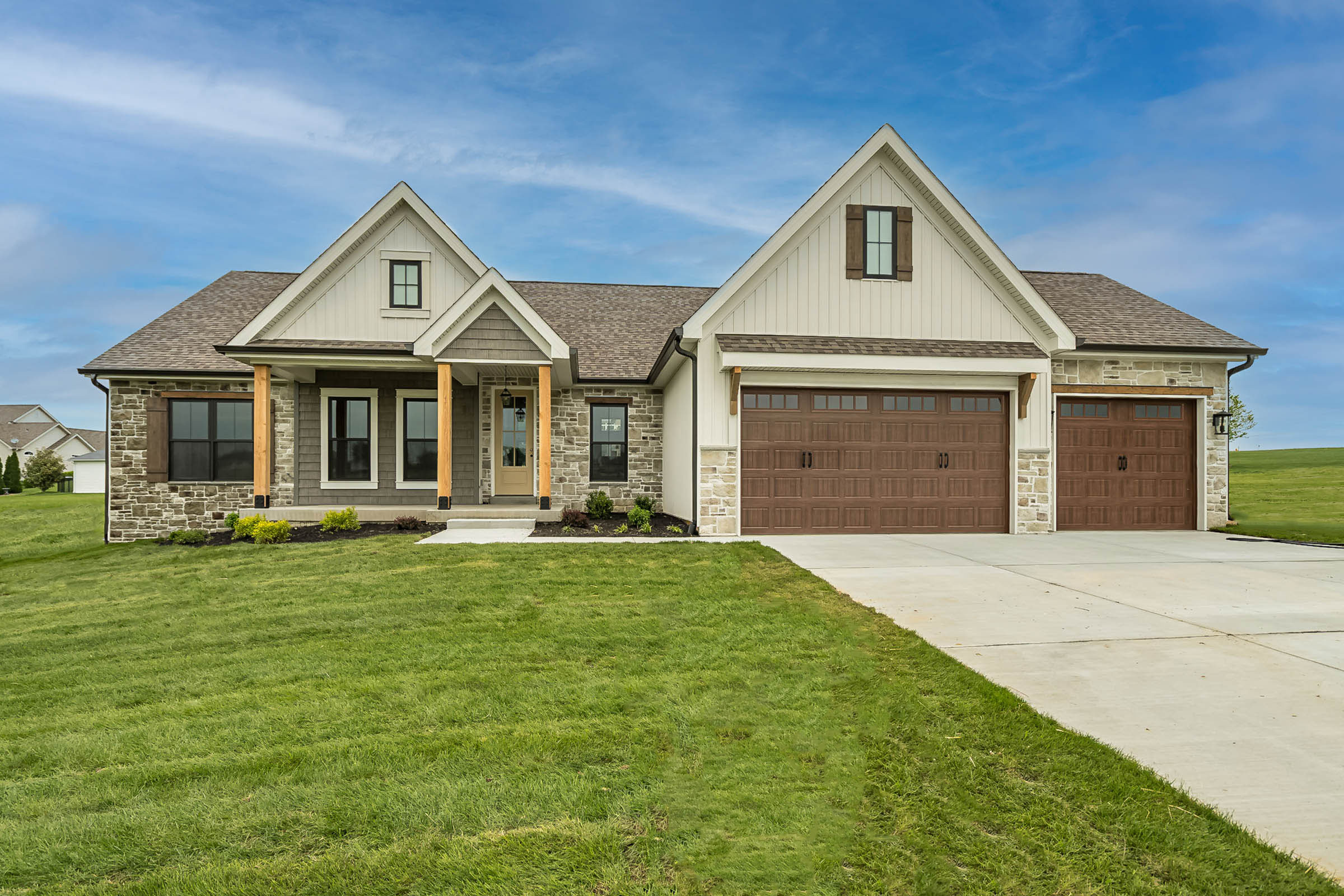 surround the 2 car garage with brick make the gable above the garage shake siding