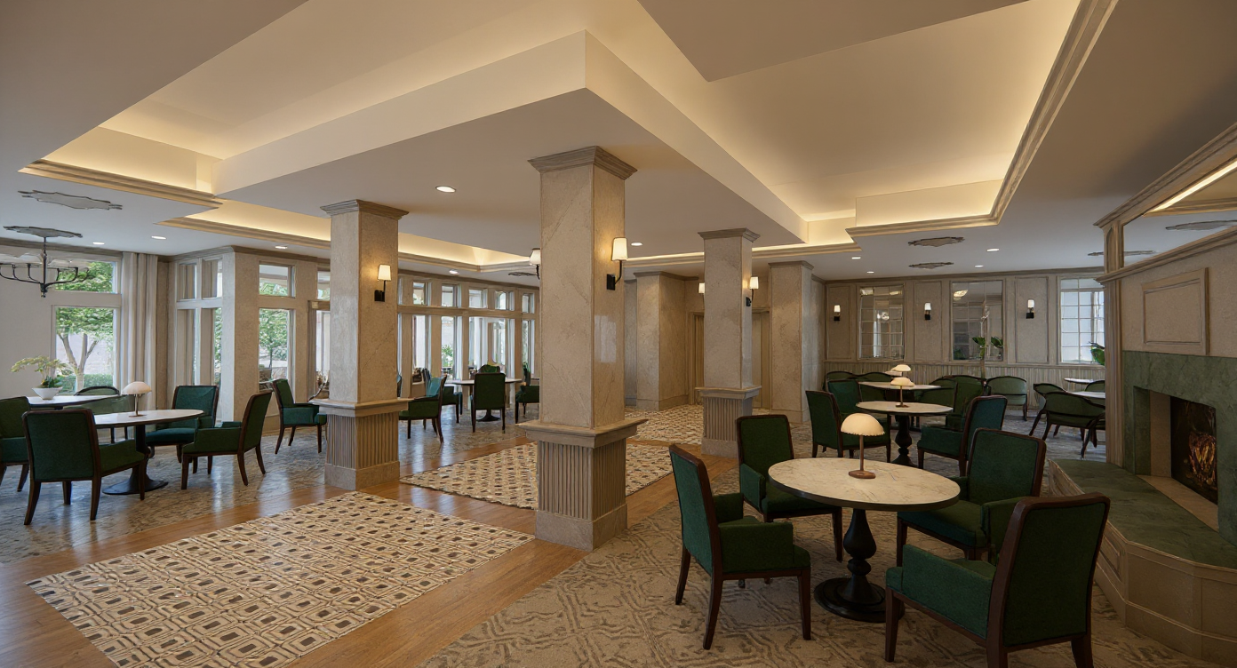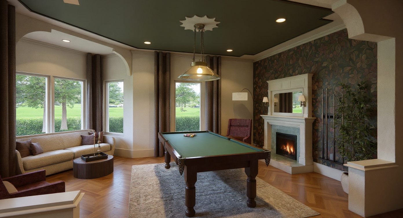 baltic birch floors abstract wall paper on wall behind bed tones are mauve