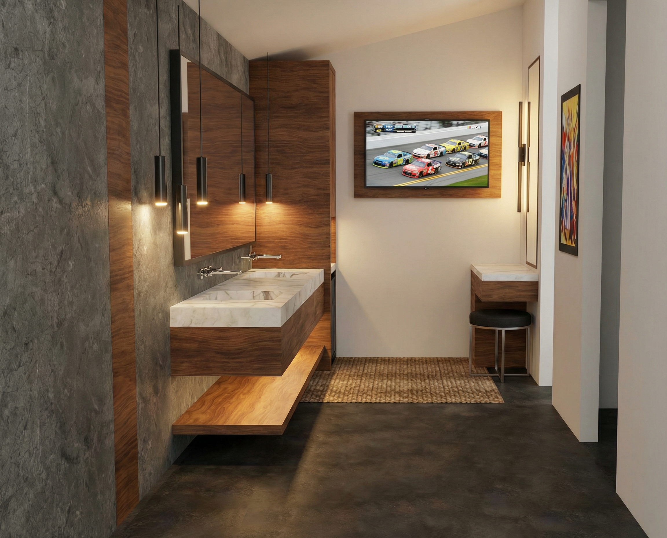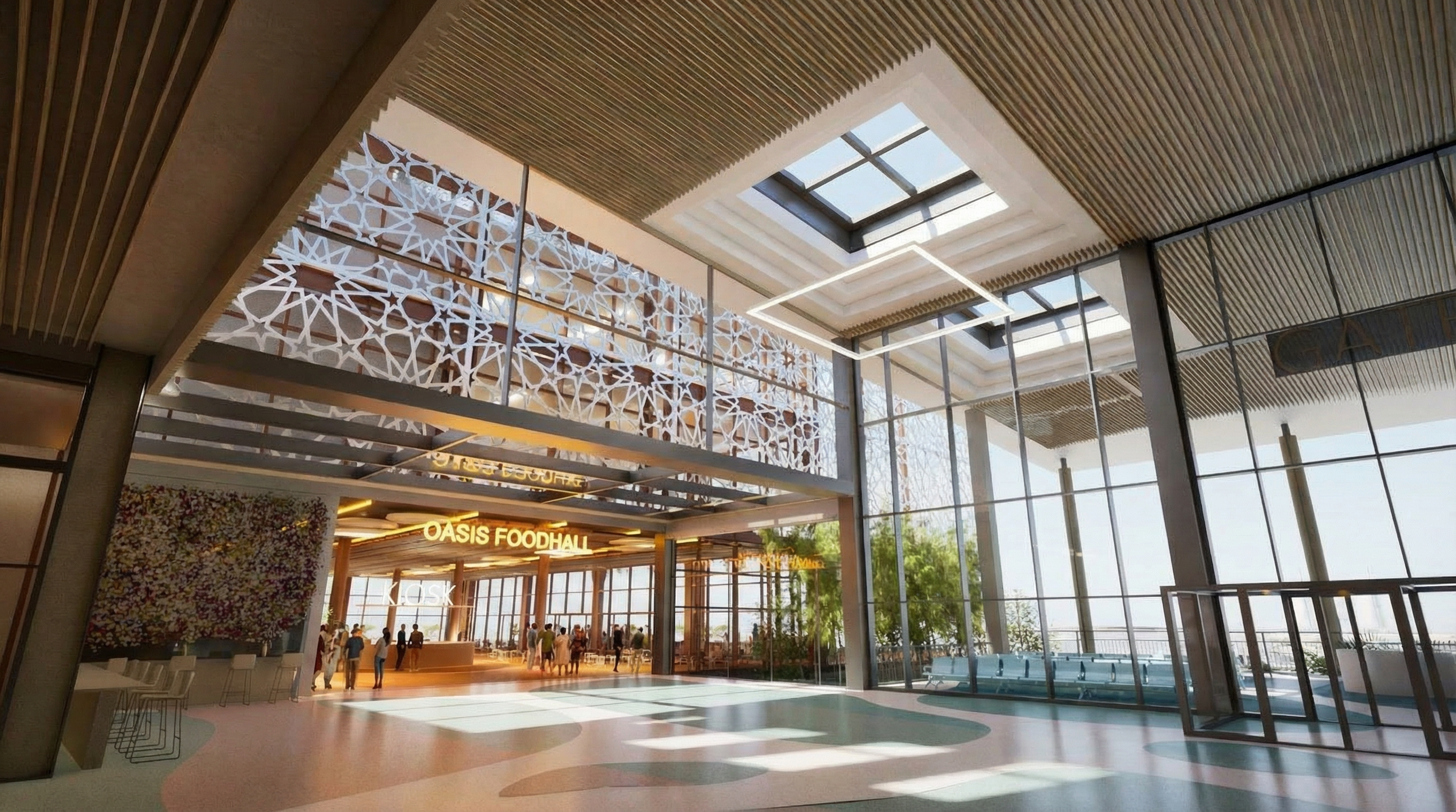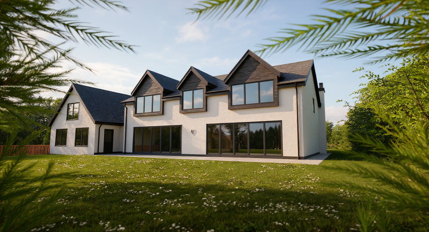 change drawing to white grey technical drawing put shadows on trees and buildings add trees parallelly to the central street in both sides building rooftops are flat add 2 cars near each building leave some of the drawing background white