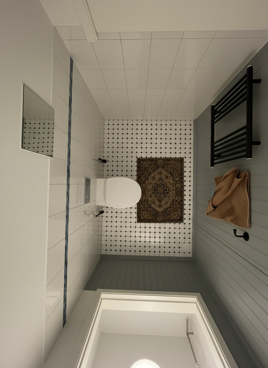adjust kitchen cabinet colors to swap the pale grey color to be the bottom cabinets and the medium walnut color as the upper cabinets adjust countertop and backsplash to be a grey stone look