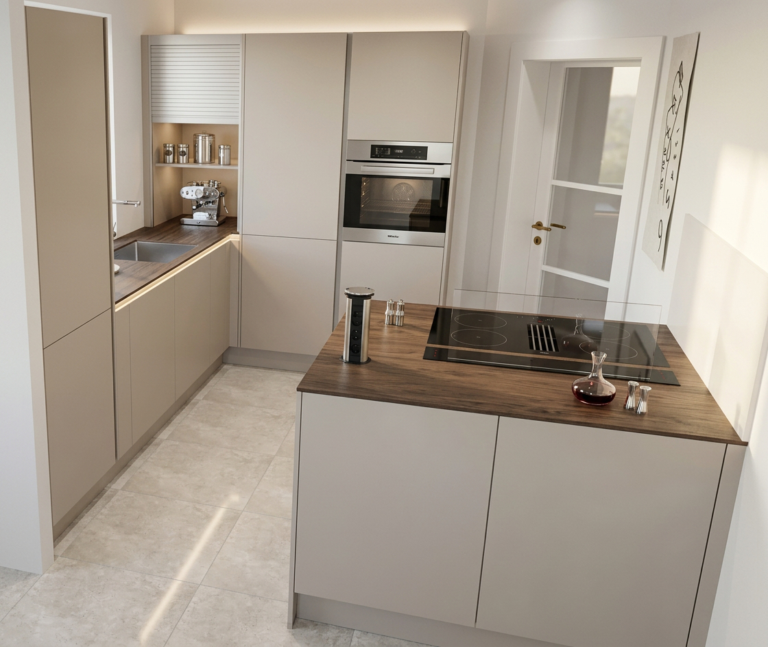 keep the exact architecture materials colors and camera lighting correction only the central pendant lamp must emit soft diffused warm light 2700k remove the visible light bulb hotspot inside the lamp the fabric shade should glow evenly with a soft uniform illumination the light source must be hidden inside the lamp so the lamp appears as a continuous soft glowing diffuser keep the same atmosphere and lighting balance in the rest of the scene do not modify furniture shelves walls ceiling or people