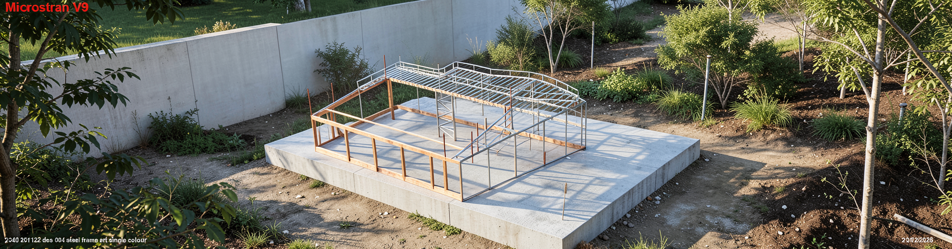 closer look at steel frame and timber frame on a concrete slab