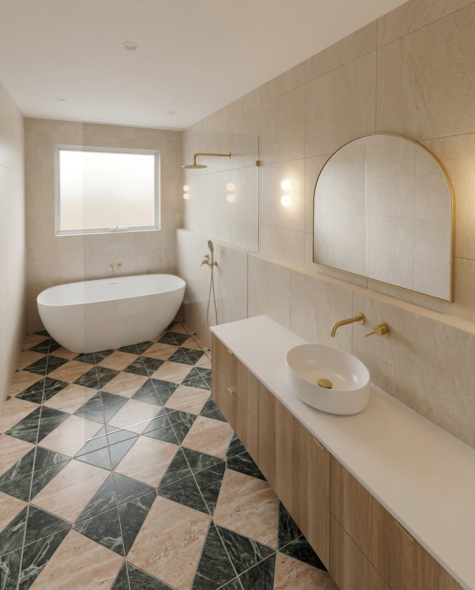 exterior shot diamond 50x50mm mosaic pattern to floor 1200x600mm wall tile vertical pattern