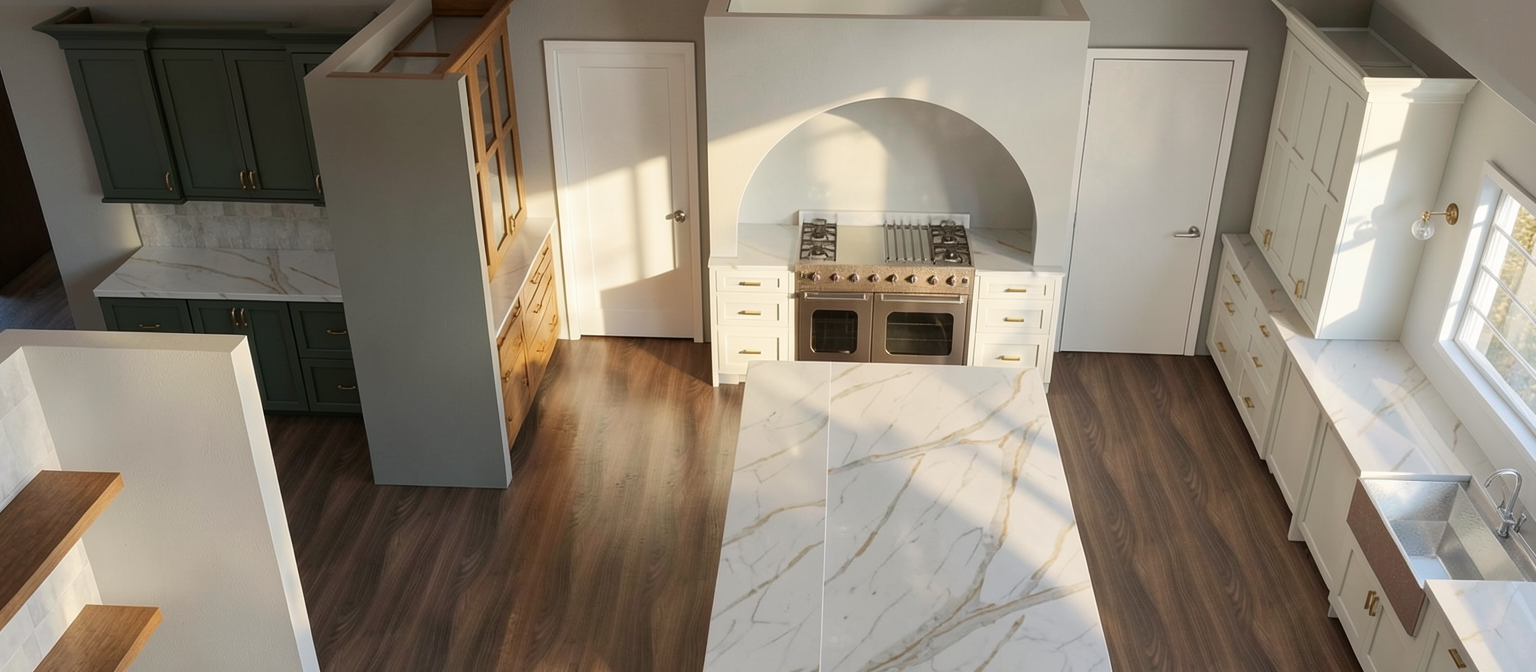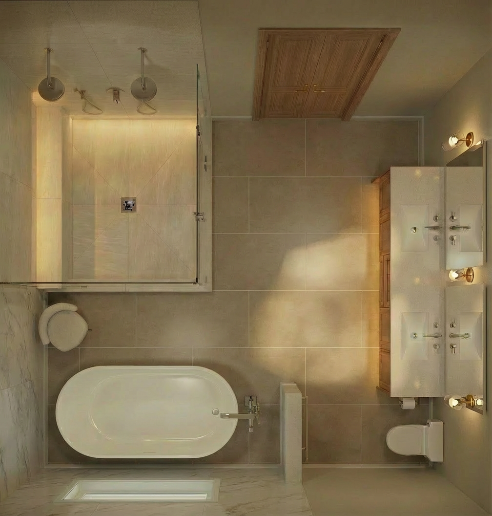 preserve the exact layout camera angle and placement of all elements do not move or redesign anything narrow both vanity mirrors so they are vertically aligned with each sink and do not extend beyond the width of the vanity below resize mirrors to be slimmer and centered over each sink move all wall sconces inward so they sit fully within the width of each mirror and vanity keep sconces symmetrically placed on each side of the mirrors not outside the vanity edges maintain current style lighting warmth and materials do not change layout fixtures or camera angle