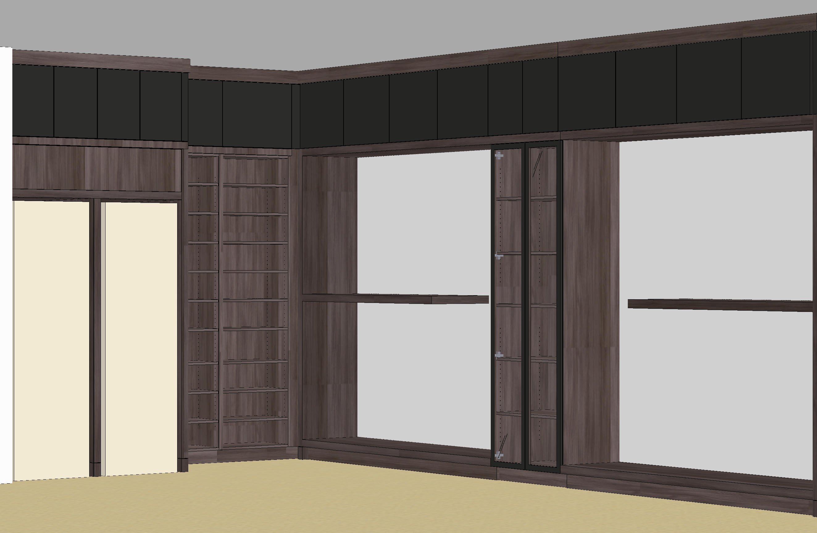 add leds in the shelves the 2 white boxes on the left side of the picture are a tower washer and dryer and a lg steam unit add clothes on cloet rods
