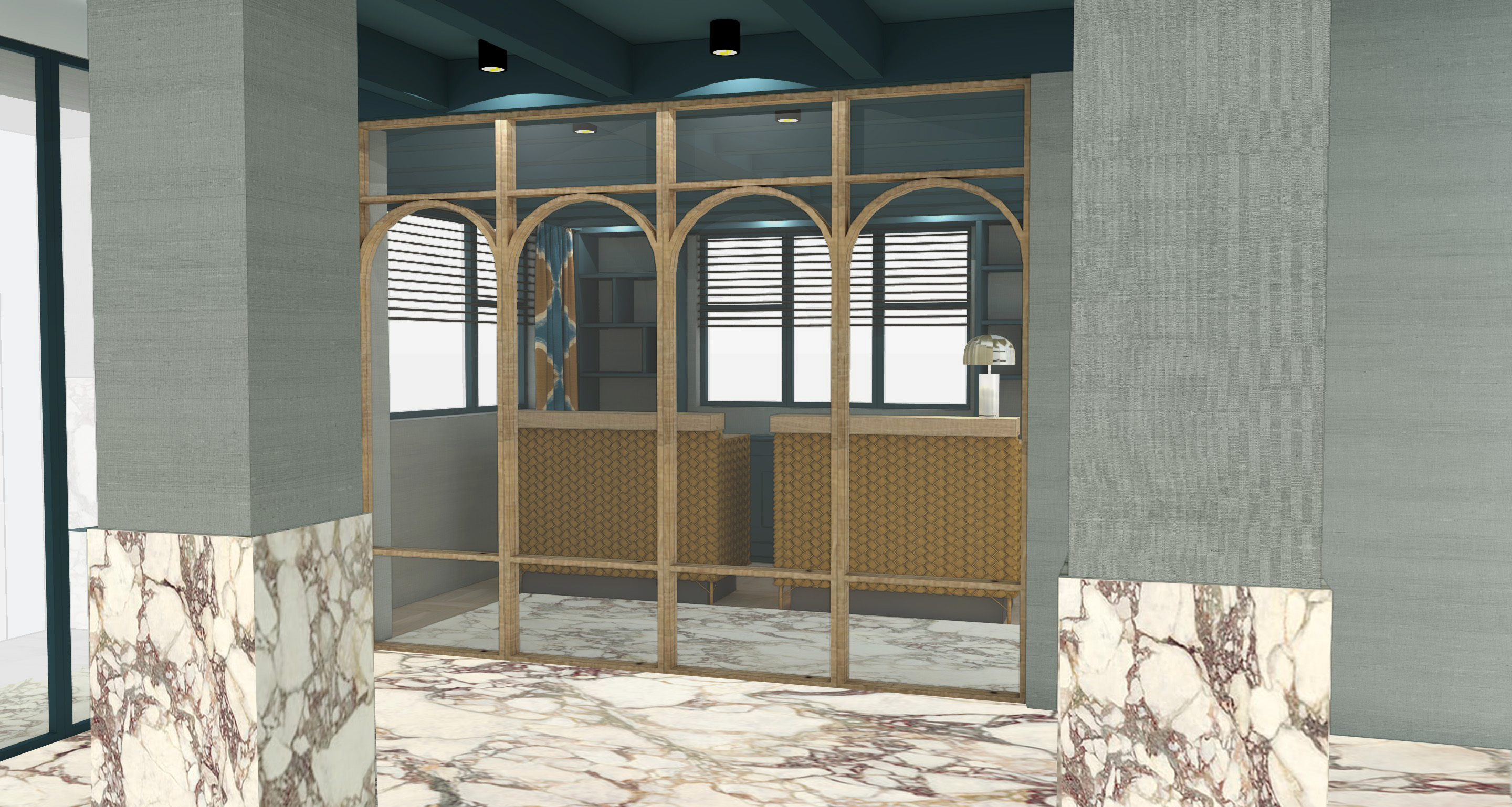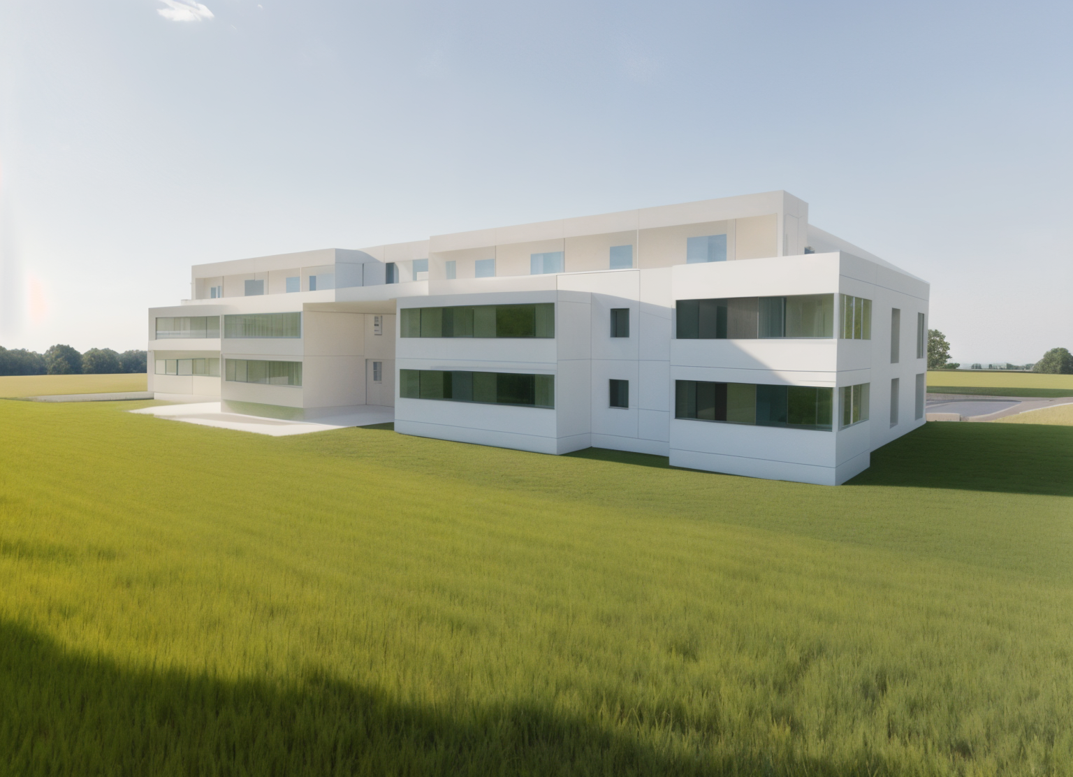 modernist interior shot create a realistic render we see sunlight truogh the windows architecture