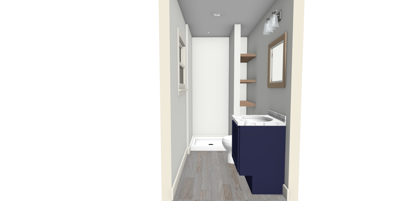 edit this photo rendering to make the bathroom look more realistic and seem as if the photo was taken inside the bathroom