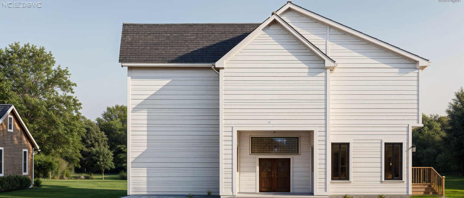 modernist exterior shot white exterior wood below windows silver window frames parking lot with some shrubs architecture