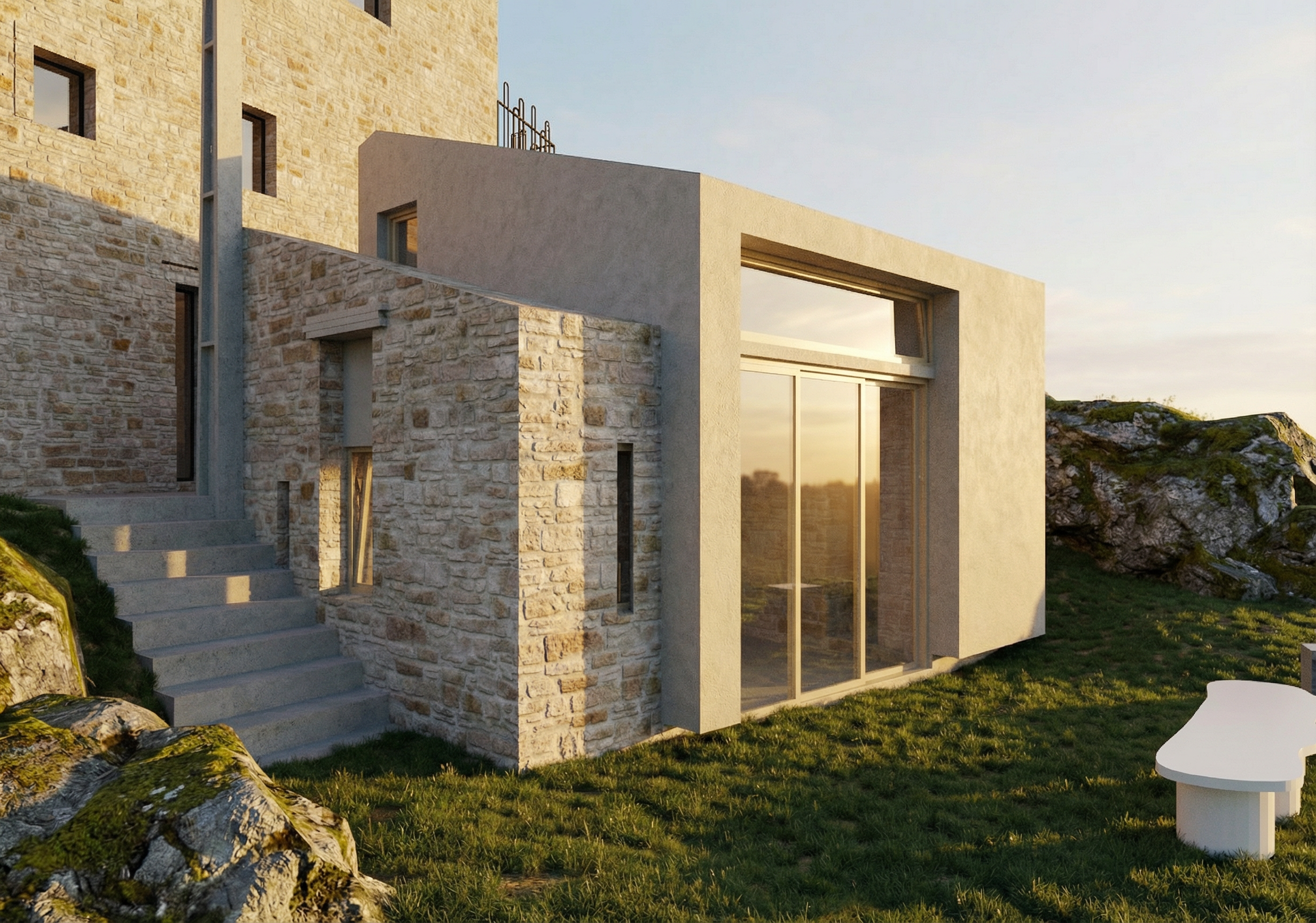 please change the tile backsplash to be a white 1x6 tile laid in a vertical stack pattern please slightly lighten the wood on the lower cabinets and island to be white oak upper cabinets to be skinny shaker door fronts and painted benjamin moore simply white the range hood will be a textured white plaster finish and the design build of the range hood would be a soft curved hood cabinet hardware is oil rubbed bronze finish keep the faucet the same finish and style as shown