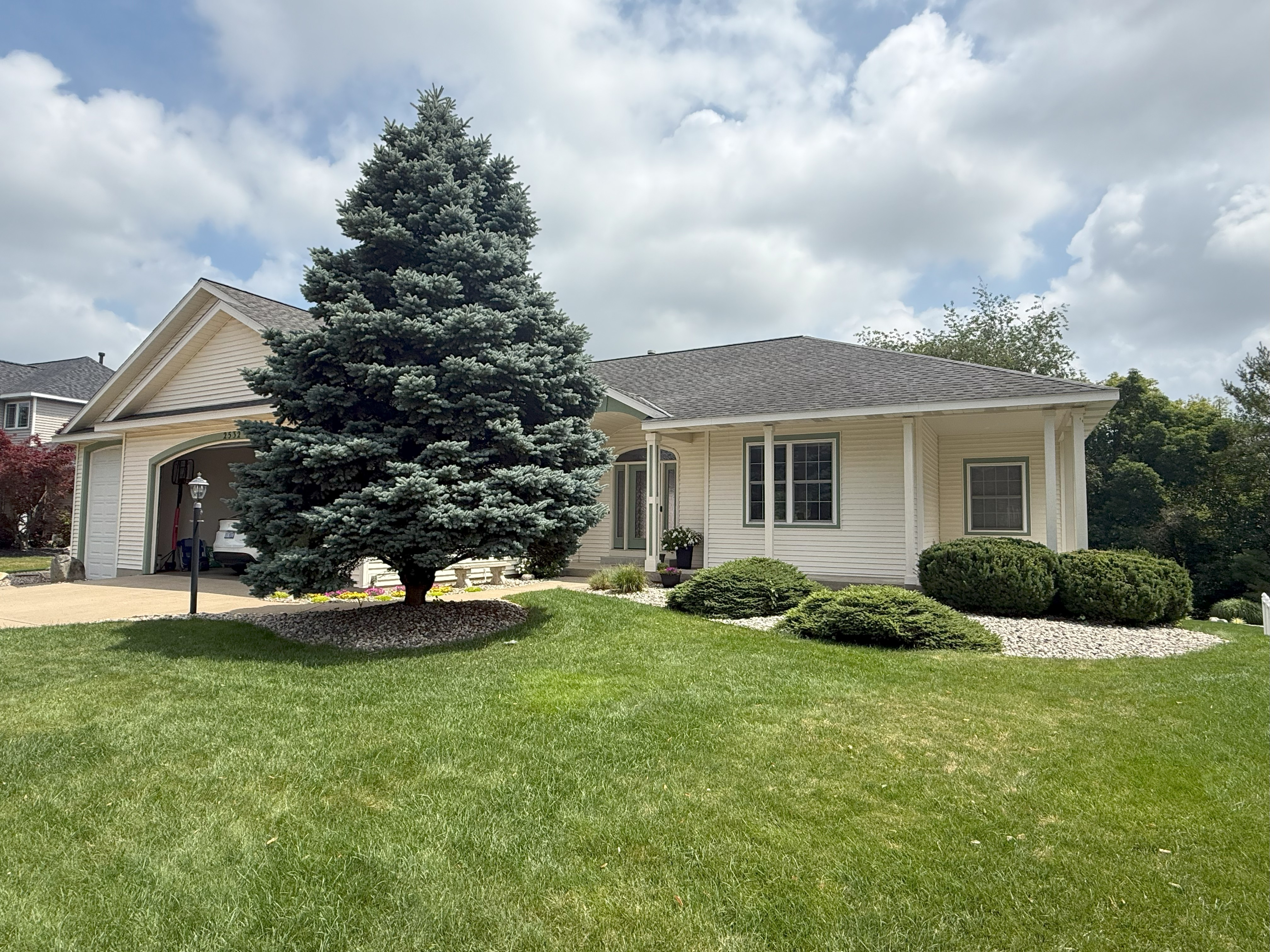 remove tree make house look like a seaside cottage with some stone on the bottom of house