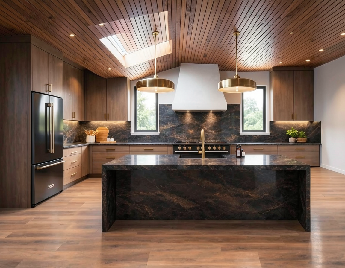 budynek z muru pruskiego drewno szare postarzane wype nienie cian z cegie ki w kolorze starej ceg y z prawej strony s up drewniany i pustka tam jest taras ramy okien grafitowe komin stal szczotkowana