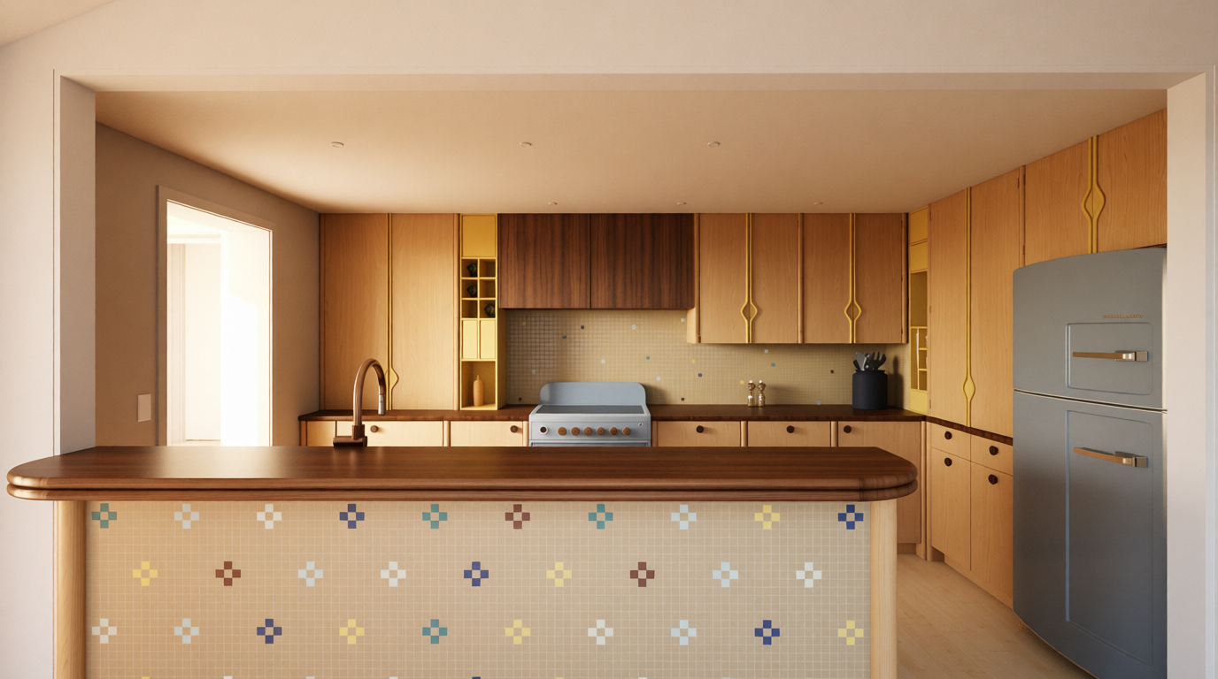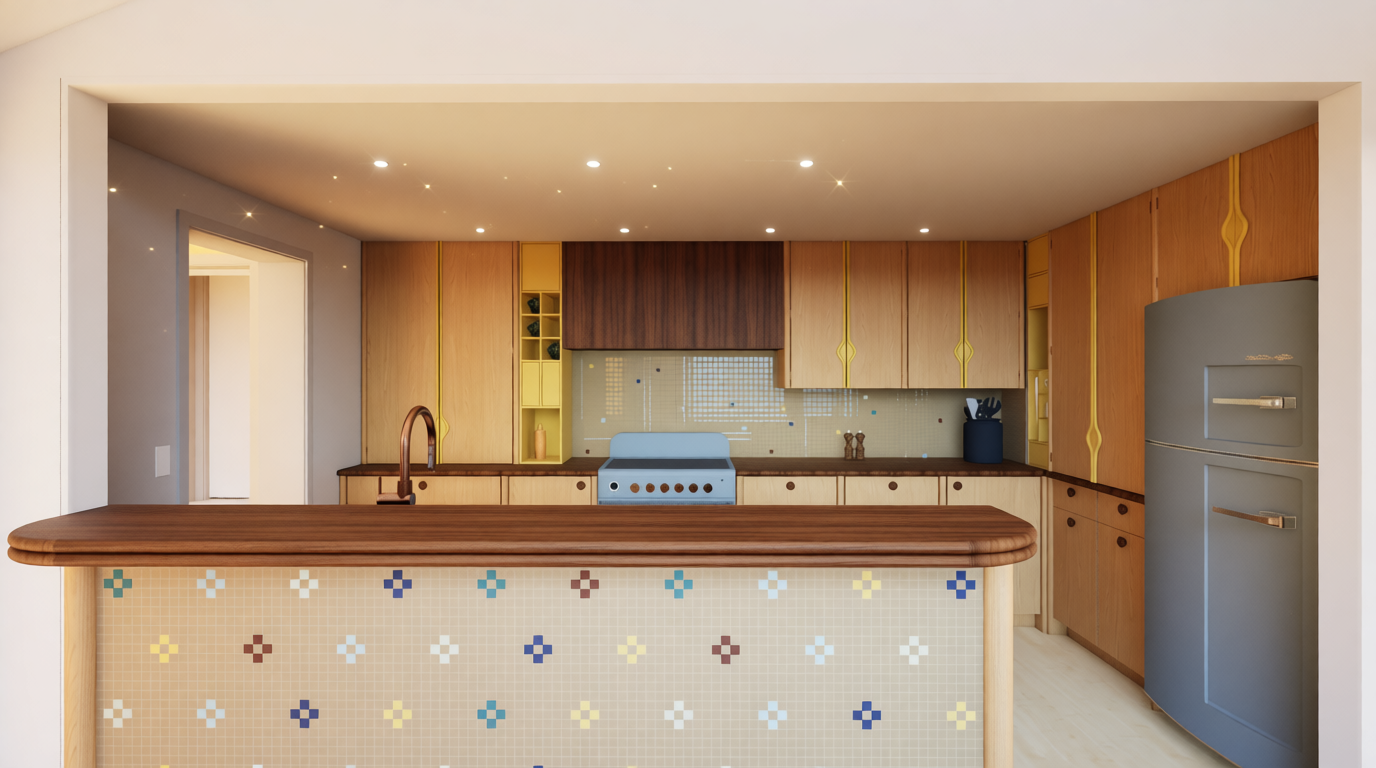 keep call colors and textures the same just make this look like a photo realistic rendering have outside the windows show trees