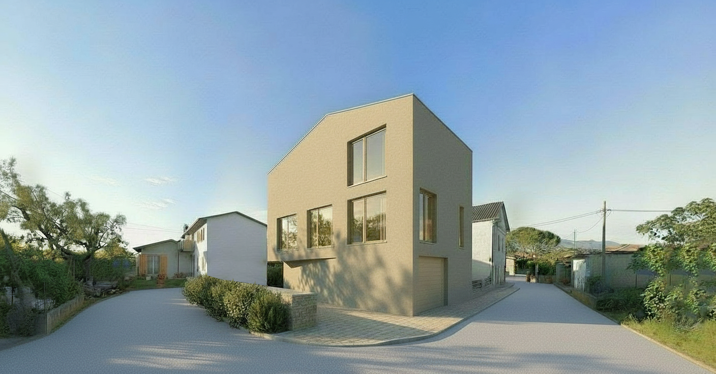 add a car entering the driveway and a person walking from towards the car the person should be clothed casually