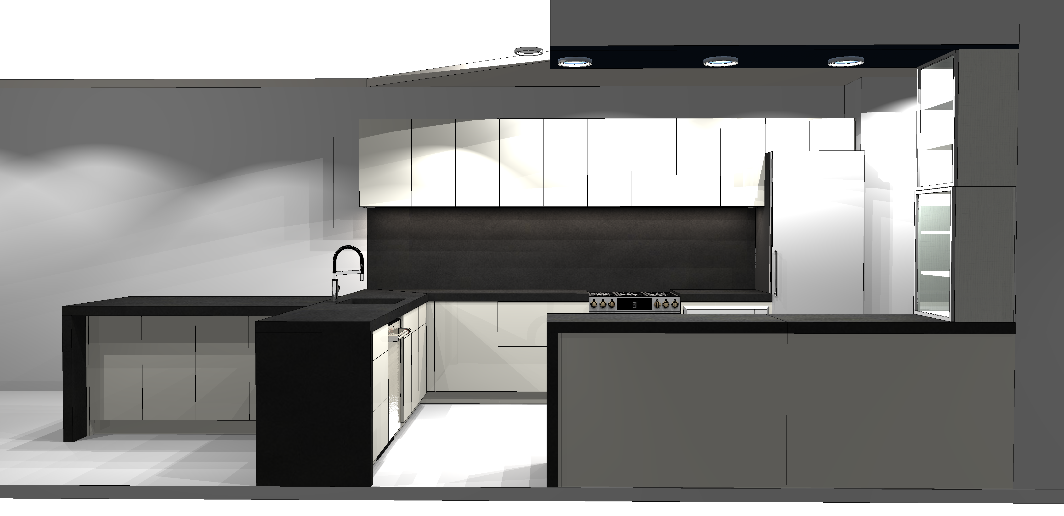 realistic kitchen keep finishes white matte cabinets and black countertop and backsplash keep layout