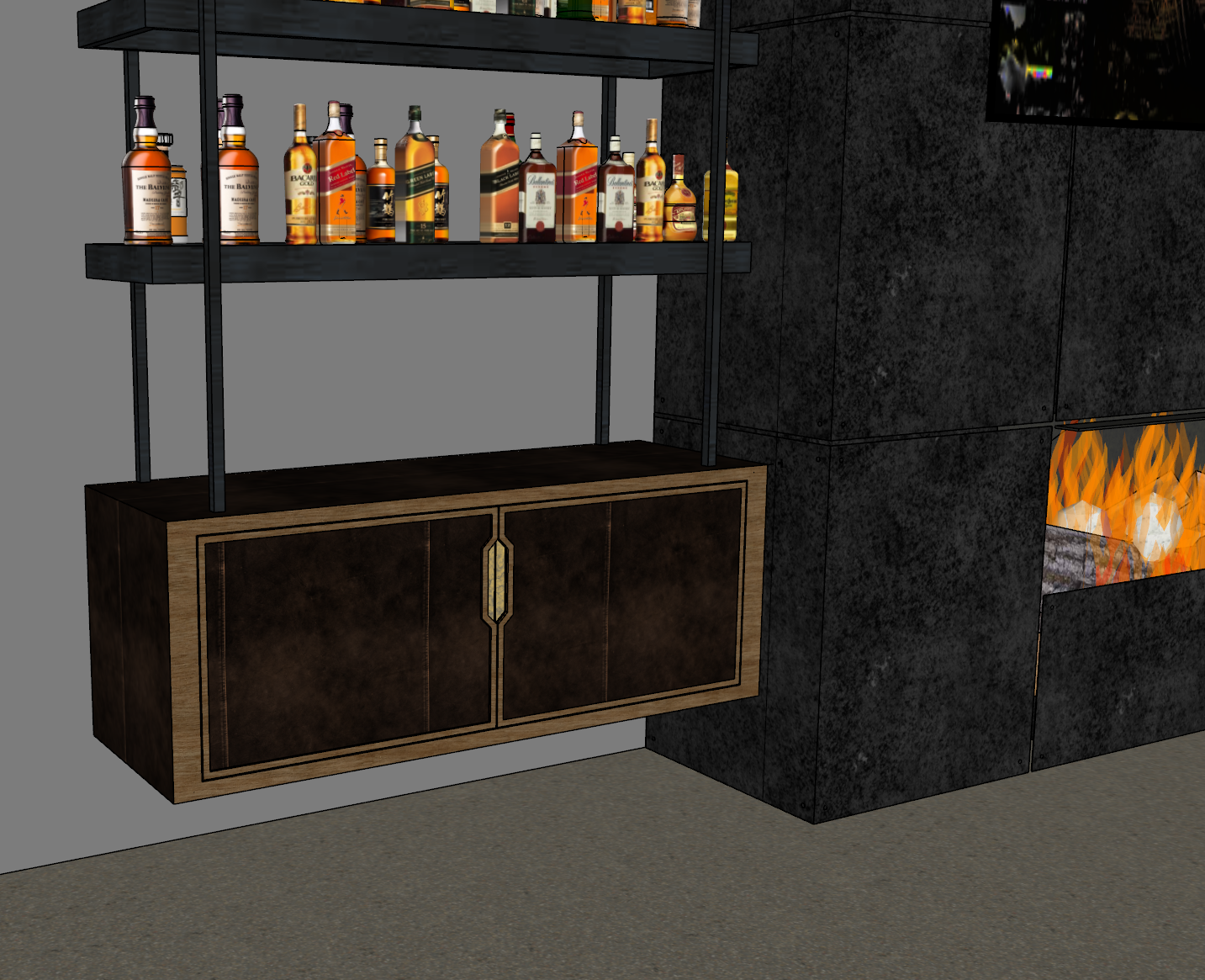 coffee color leather on door faces and top and sides of cabinet the face frame of the cabinet is walnut