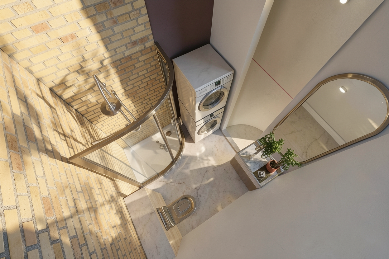 retain everything the style and lighting and render style just add the logo wave on the front of the building