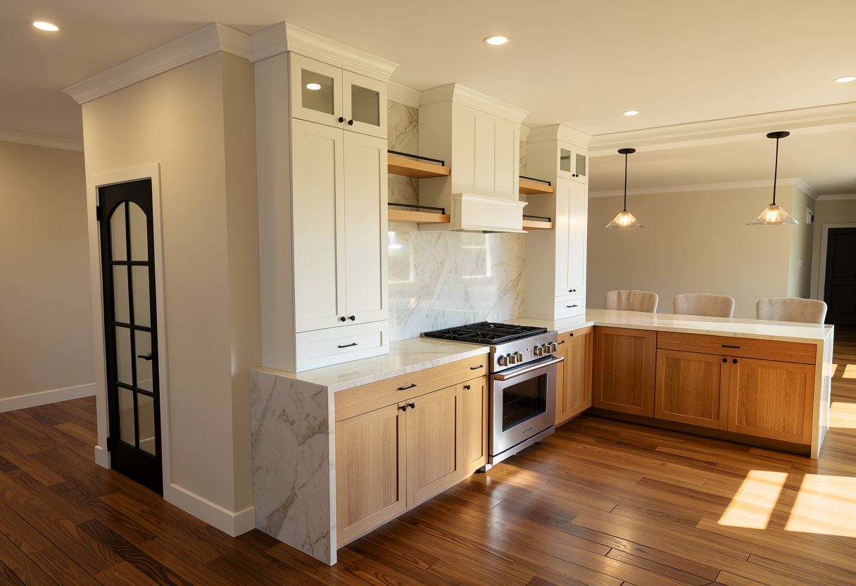 the wooden fronts have a thin frame put decoration in metal shelf